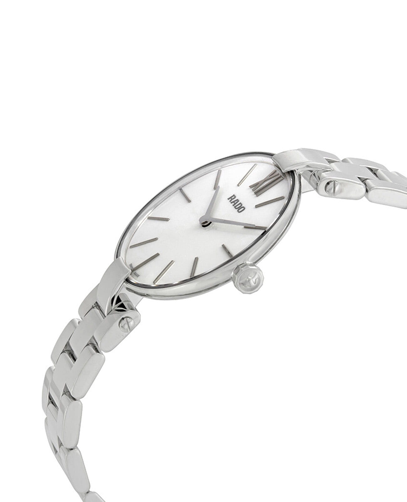 Швейцарские женские часы Rado Coupole R22850013, кварцевый механизм с высокой точностью. Сапфировое стеклоСапфировое стеклоПрочный и надёжный материал из кристалла сапфира синтетического происхождения, характеризующийся особой твёрдостью и устойчивостью к царапинам и повреждениям. устойчивое к появлению царапин, обладающее высокой прозрачностью. Корпус часов изготовлен из нержавеющей стали. Класс водозащиты: 50 метров, позволит защитить корпус от случайных брызг или капель дождя. Стальной браслет на застёжке-бабочке с кнопкамиЗастёжка "бабочка"Такой вид застёжки дополняется предохранителями, помогающими избежать случайного раскрытия браслета. Обладают изящным исполнением. .