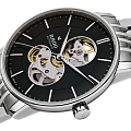 Лаконичный чёрный циферблат создает невероятный контраст с холодным блеском нержавеющей стали 316L, Часы скелетоны привлекают необычным браслетом, состоящим из звеньев разного размера. Модель оснащена автоматическим калибром ETA C07.631 с увеличенным запасом хода до 80 часов, за его работой можно понаблюдать сквозь прозрачную заднюю крышку и 3 окошка в циферблате. Сапфировое стекло с антибликовой обработкой устойчиво к возникновению царапин. Водостойкость 5 бар. . Диаметр корпуса: 41 мм.