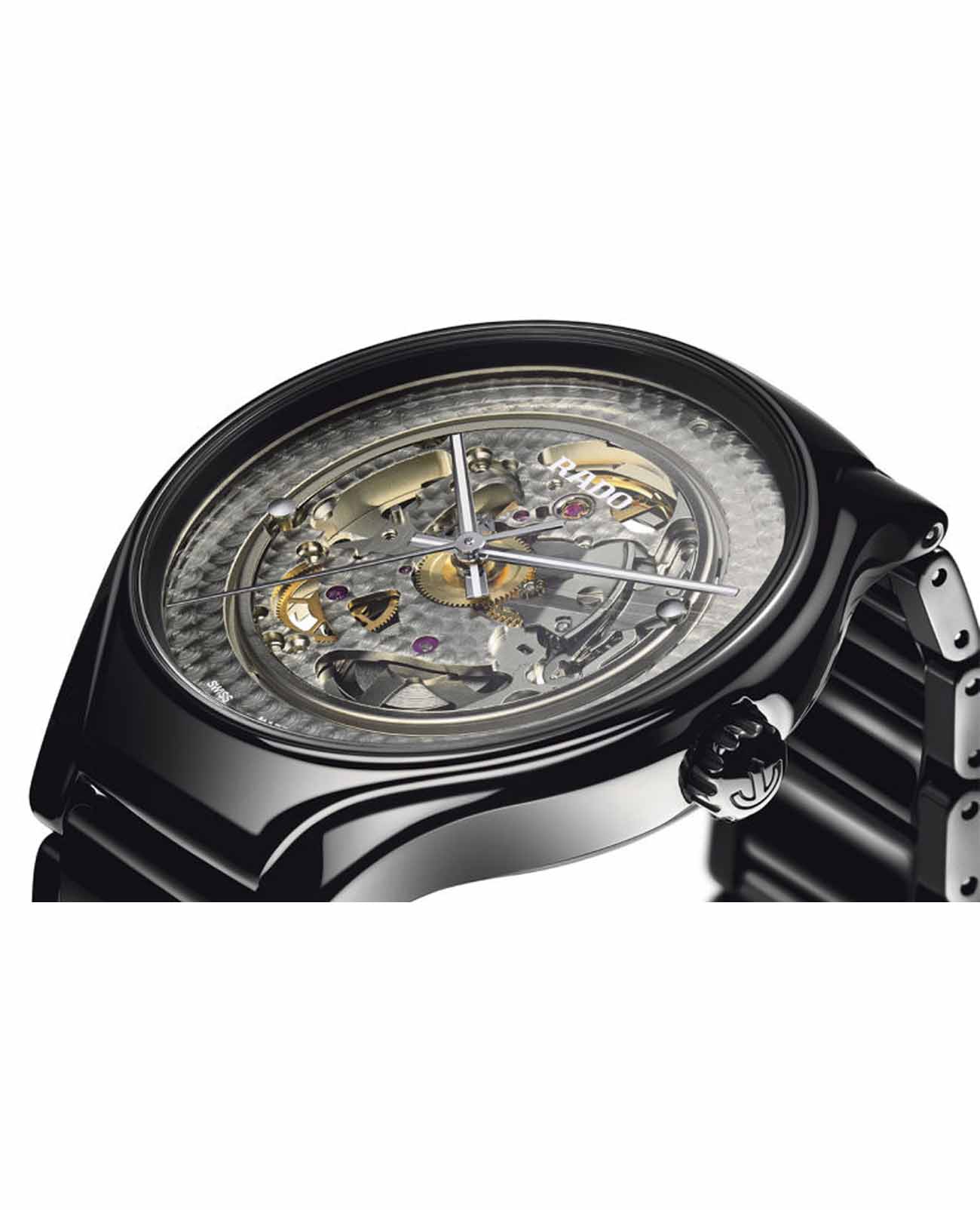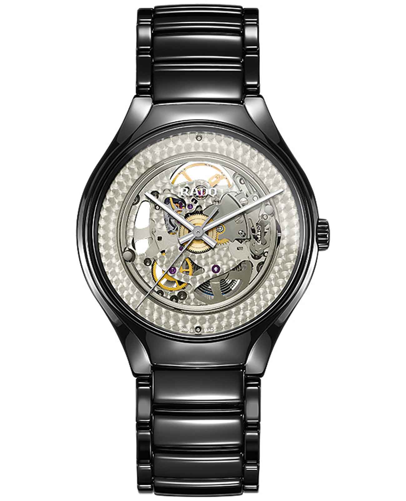 Женские механические швейцарские часы-скелетоны Rado True Shadow Automatic Limited Edition R27100122. Лимитированный выпуск (1001 экземпляр) Kunihiko Morinaga - модель создана при участии известного японского дизайнера Кунихико Моринаги. Сапфировое стеклоСапфировое стеклоПрочный и надёжный материал из кристалла сапфира синтетического происхождения, характеризующийся особой твёрдостью и устойчивостью к царапинам и повреждениям. устойчивое к мелким механическим повреждениям. Корпус часов изготовлен из высокотехнологичной керамикиВысокотехнологичная керамикаИнновационный запатентованный Rado материал с гладкой или матовой поверхностью. Керамика за счёт кристаллической структуры обладает повышенной устойчивостью от возникновения царапин. Материал способен принимать температуру тела человека, обеспечивая невероятный комфорт при ношении.. Скелетонизированный циферблат. Класс водозащиты: 50 метров, позволит защитить корпус от случайных брызг или капель дождя. Браслет высокотехнологичной керамикиВысокотехнологичная керамикаИнновационный запатентованный Rado материал с гладкой или матовой поверхностью. Керамика за счёт кристаллической структуры обладает повышенной устойчивостью от возникновения царапин. Материал способен принимать температуру тела человека, обеспечивая невероятный комфорт при ношении. на застёжке «бабочка» с кнопкамиЗастёжка "бабочка"Такой вид застёжки дополняется предохранителями, помогающими избежать случайного раскрытия браслета. Обладают изящным исполнением. .