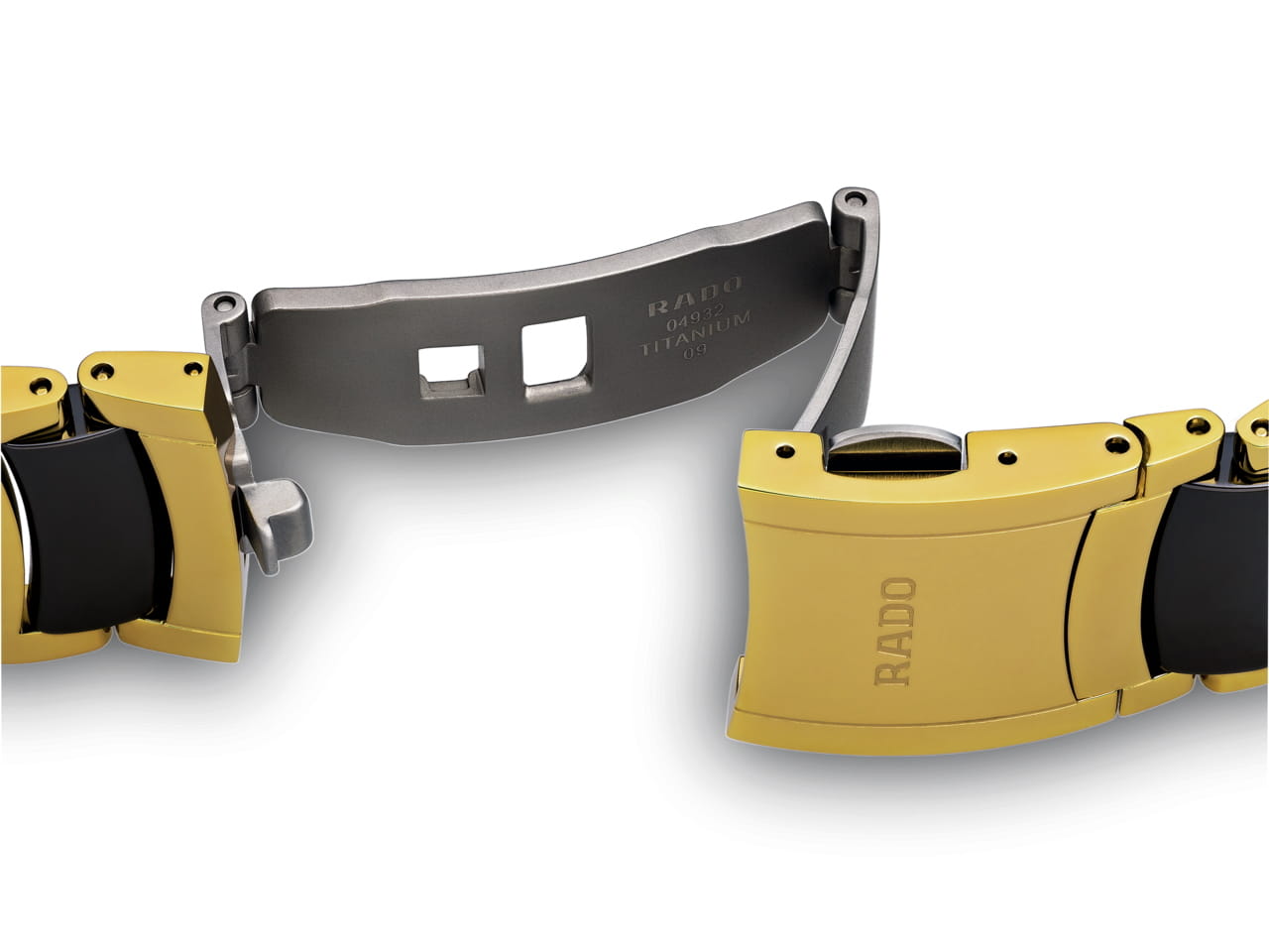 Аксессуар в золотом цвете станет достойным дополнением к образу солидного и делового мужчины. Это стильная деталь современного имиджа, особый шик ей придают 12 бриллиантов цвета Top Wesselton в 0,034 карат. Наручные часы с автоподзаводом работают за счёт калибра ETA C07.611, который отличается увеличенным запасом хода до 80 часов. Понаблюдать за движением частиц механизма можно через прозрачную заднюю крышку. Надёжный корпус из хирургической стали 316L. Браслет имеет вставки из высокотехнологичной керамикиВысокотехнологичная керамикаИнновационный запатентованный Rado материал с гладкой или матовой поверхностью. Керамика за счёт кристаллической структуры обладает повышенной устойчивостью от возникновения царапин. Материал способен принимать температуру тела человека, обеспечивая невероятный комфорт при ношении.. Износоустойчивое PVD-покрытиеPVDУльтратонкое покрытие наносится в технике вакуумного напыления, сочетает в себе нитрид титана особой прочности со слоем золота или оксида хрома. Несёт в себе декоративную или защитную функцию. цвета розового золота. Стекло из сапфира. Апертура даты. Диаметр корпуса: 28 мм.