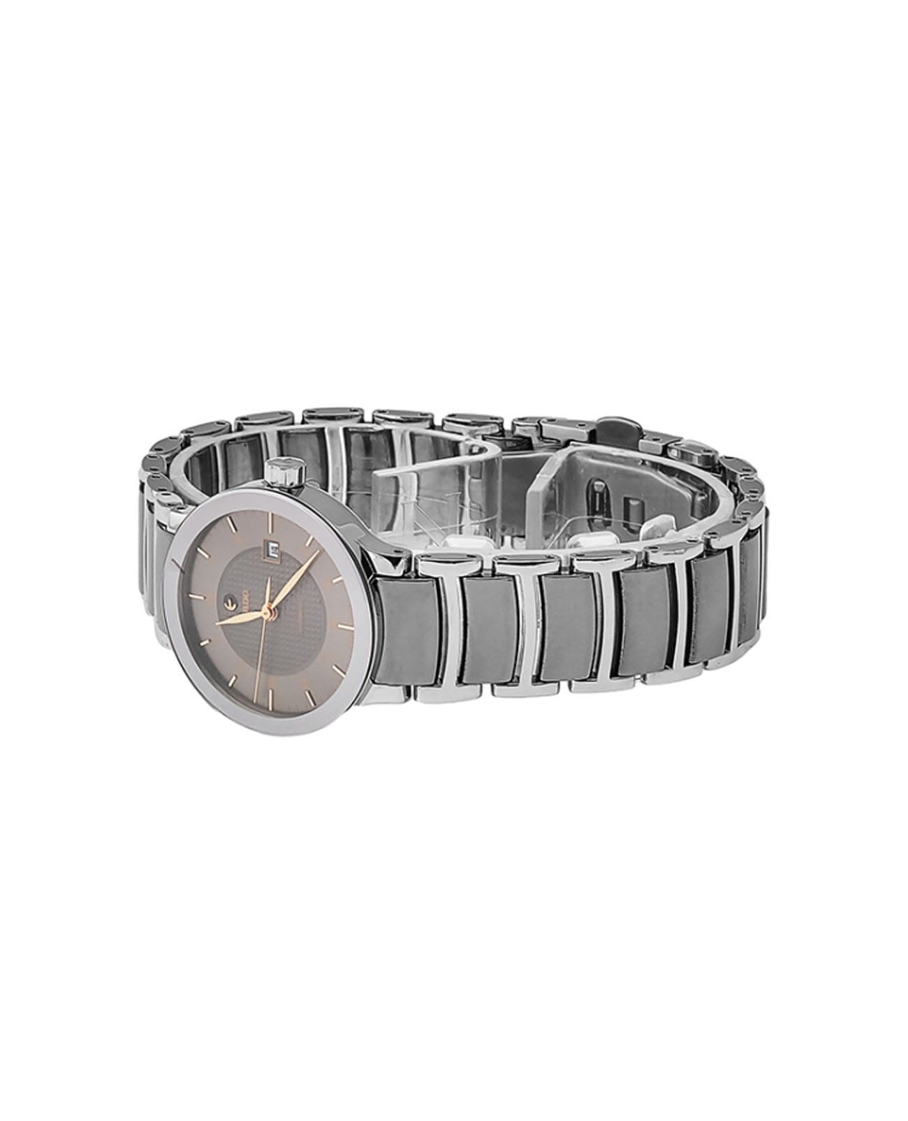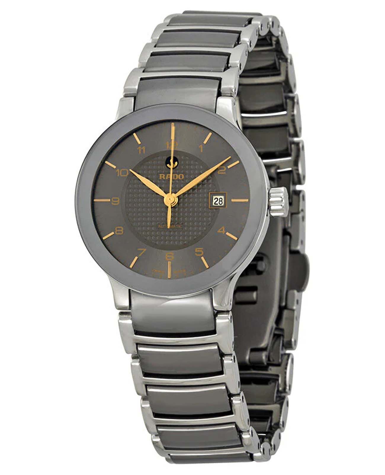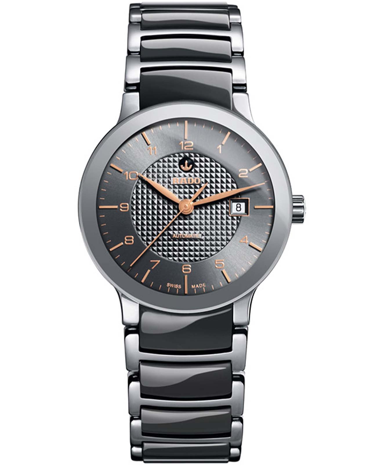 Швейцарские женские механические часы с автоподзаводом Rado Centrix R30940132. Сапфировое стеклоСапфировое стеклоПрочный и надёжный материал из кристалла сапфира синтетического происхождения, характеризующийся особой твёрдостью и устойчивостью к царапинам и повреждениям. устойчивое к появлению царапин, обладающее высокой прозрачностью. Корпус часов изготовлен из нержавеющей стали. Окошко даты находится в положении 3 часа. Класс водозащиты: 30 метров, позволит защитить корпус от случайных брызг или капель дождя. Браслет из нержавеющей стали высокотехнологичной плазменной керамикиВысокотехнологичная плазменная керамикаИнновационный материал, технология запатентована. Выплавление керамики осуществляется в печи при 20 000 °C, белоснежный материал под воздействием ультравысокой температуры приобретает уникальный блеск, присущий металлам. на раскладной застёжкеРаскладная застёжкаТакой тип застёжки используется только на браслетах из металла. Она никогда не раскрывается полностью, происходит разделение на 2 и более частей. Раскладывающая застёжка снизит вероятность потери часов к минимуму..