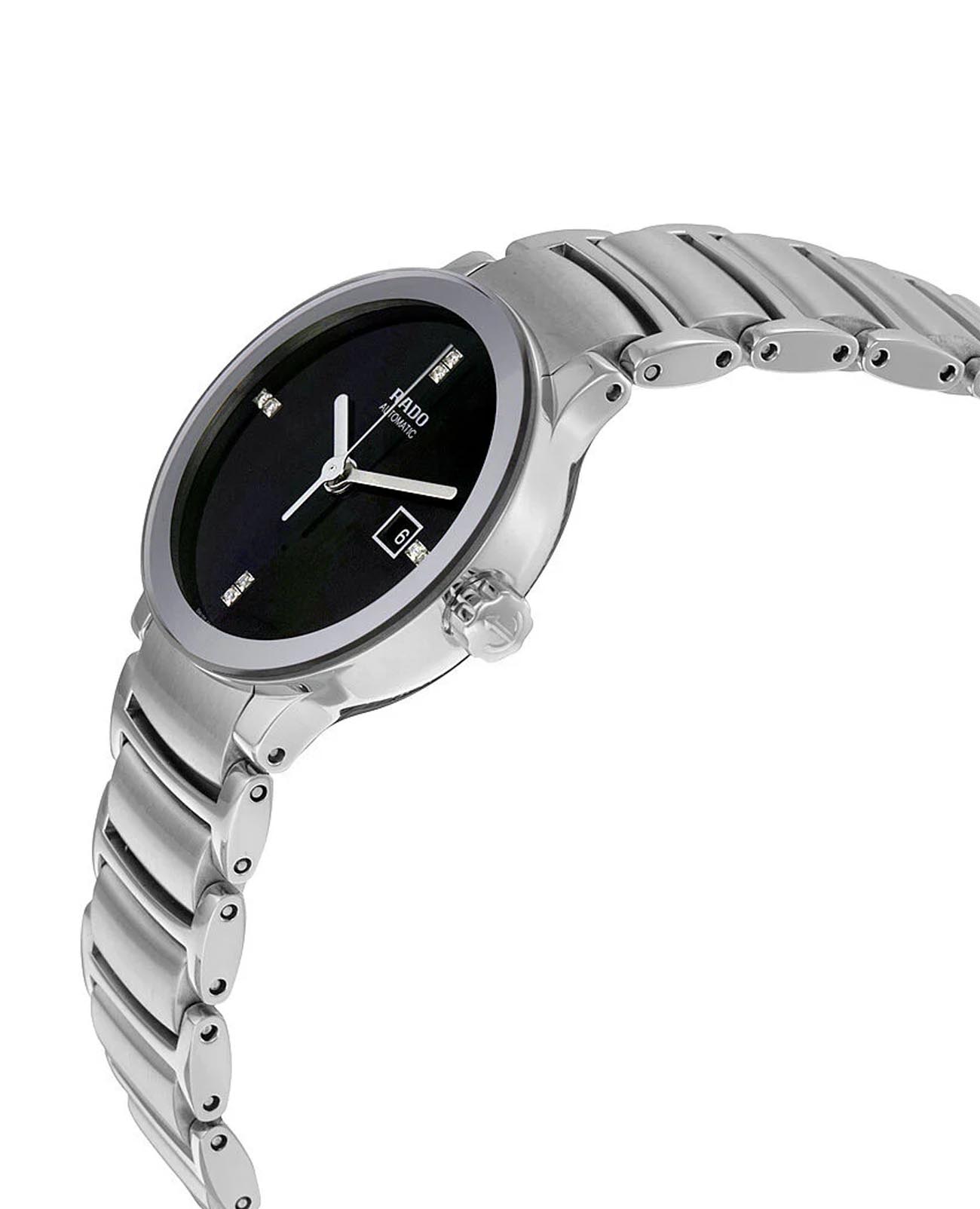 Швейцарские женские механические часы с автоподзаводом Rado Centrix Diamonds R30940703. Сапфировое стеклоСапфировое стеклоПрочный и надёжный материал из кристалла сапфира синтетического происхождения, характеризующийся особой твёрдостью и устойчивостью к царапинам и повреждениям. устойчивое к появлению царапин, обладающее высокой прозрачностью. Корпус часов изготовлен из нержавеющей стали. Циферблат украшен бриллиантами. Класс водозащиты: 30 метров, позволит защитить корпус от случайных брызг или капель дождя. Браслет нержавеющей стали на раскладной застёжкеРаскладная застёжкаТакой тип застёжки используется только на браслетах из металла. Она никогда не раскрывается полностью, происходит разделение на 2 и более частей. Раскладывающая застёжка снизит вероятность потери часов к минимуму..