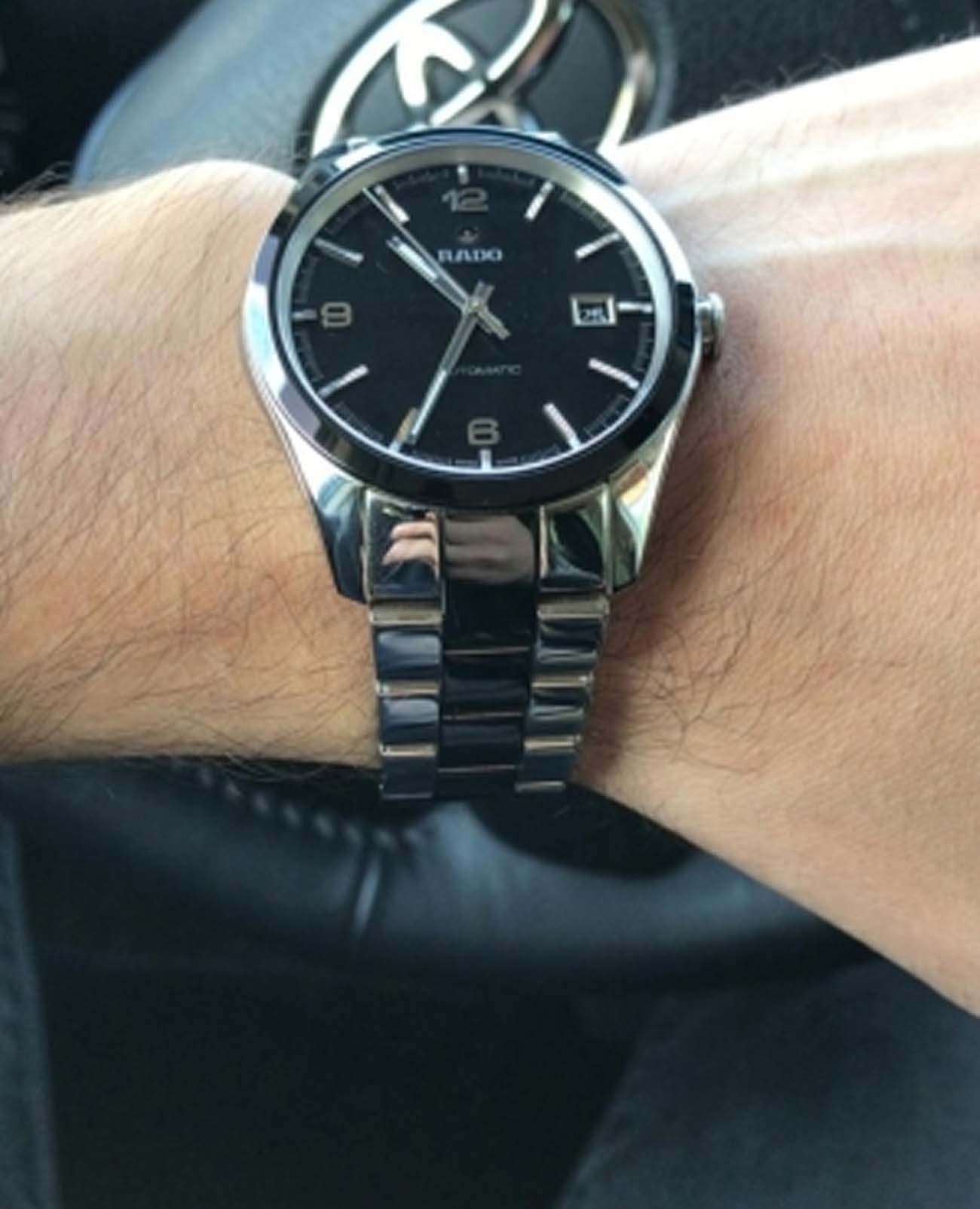 Мужские механические швейцарские часы с автоподзаводом Rado Hyperchrome R32109152. Сапфировое стеклоСапфировое стеклоПрочный и надёжный материал из кристалла сапфира синтетического происхождения, характеризующийся особой твёрдостью и устойчивостью к царапинам и повреждениям. устойчивое к мелким механическим повреждениям. Корпус часов изготовлен из нержавеющей стали. БезельБезельВнешний ободок, закрепляющий стекло. В спортивных часах так называется поворотное кольцо с делениями на циферблате, выполняет роль таймера – замеряет отрезки времени на шкале. Неподвижный безель – элемент декора. Однонаправленно вращающийся безель на дайверских часах позволяет фиксировать моменты погружения и выныривания на поверхность. из высокотехнологичной керамикиВысокотехнологичная керамикаИнновационный запатентованный Rado материал с гладкой или матовой поверхностью. Керамика за счёт кристаллической структуры обладает повышенной устойчивостью от возникновения царапин. Материал способен принимать температуру тела человека, обеспечивая невероятный комфорт при ношении.. Окошко даты находится в положении 3 часа. Стрелки с люминесцентным покрытиемЛюминесцентное покрытиеПозволяет считывать показания времени в темноте. Производители наносят на стрелки, часовые индексы, безель или поверхность циферблата светонакопительный состав, дающий холодное свечение.. Класс водозащиты: 50 метров, позволит защитить корпус от случайных брызг или капель дождя. Браслет из нержавеющей стали и высокотехнологичной керамикиВысокотехнологичная керамикаИнновационный запатентованный Rado материал с гладкой или матовой поверхностью. Керамика за счёт кристаллической структуры обладает повышенной устойчивостью от возникновения царапин. Материал способен принимать температуру тела человека, обеспечивая невероятный комфорт при ношении. на раскладной застёжкеРаскладная застёжкаТакой тип застёжки используется только на браслетах из металла. Она никогда не раскрывается полностью, происходит разделение на 2 и более частей. Раскладывающая застёжка снизит вероятность потери часов к минимуму..