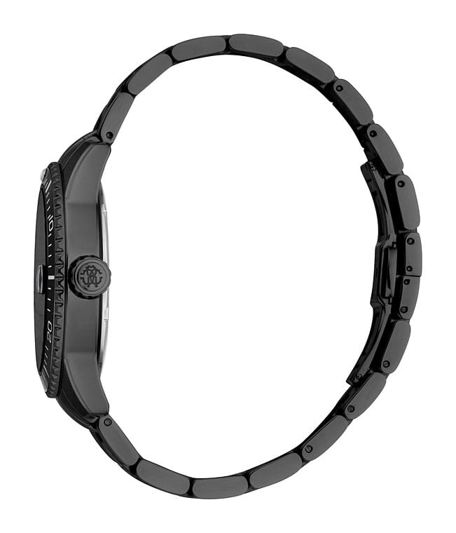 ROBERTO CAVALLI Acquatico RC5G084M0035 — стильные итальянские часы сочетающие в себе элегантность и современный функционал. Круглый корпус диаметром 42 мм выполнен из нержавеющей стали с PVD-покрытиемPVDУльтратонкое покрытие наносится в технике вакуумного напыления, сочетает в себе нитрид титана особой прочности со слоем золота или оксида хрома. Несёт в себе декоративную или защитную функцию., толщина корпуса составляет 11 мм, что придает модели выразительный внешний вид и надежную защиту от внешних воздействий. Часы оснащены кварцевым механизмом, также обладают функцией отображения даты, что делает их удобными для ежедневного использования. Минеральное стеклоМинеральное стеклоМинеральное стекло представляет собой искусственно выращенный минерал кварца. Такое стекло отличается особой устойчивостью к повреждениям и царапинам. Уступает по некоторым качествам сапфировому стеклу. защищает часы от царапин. Водозащита 100 метров, позволит плавать, нырять и заниматься другими водными видами спорта. Стальной браслет на застёжке-бабочке с кнопкамиЗастёжка "бабочка"Такой вид застёжки дополняется предохранителями, помогающими избежать случайного раскрытия браслета. Обладают изящным исполнением. обеспечивает комфортное ношение. Поворотный безельБезельВнешний ободок, закрепляющий стекло. В спортивных часах так называется поворотное кольцо с делениями на циферблате, выполняет роль таймера – замеряет отрезки времени на шкале. Неподвижный безель – элемент декора. Однонаправленно вращающийся безель на дайверских часах позволяет фиксировать моменты погружения и выныривания на поверхность. с PVD-покрытиемPVDУльтратонкое покрытие наносится в технике вакуумного напыления, сочетает в себе нитрид титана особой прочности со слоем золота или оксида хрома. Несёт в себе декоративную или защитную функцию.. Стрелки и метки с люминесцентным покрытиемЛюминесцентное покрытиеПозволяет считывать показания времени в темноте. Производители наносят на стрелки, часовые индексы, безель или поверхность циферблата светонакопительный состав, дающий холодное свечение. обеспечивают отличную читаемость в любое время суток.