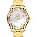 Женские кварцевые часы Santa Barbara Polo & Racquet Club — это изысканный аксессуар, подчеркивающий женственность и стиль. Корпус диаметром 34 мм и высотой 41,5 мм выполнен из латуни с IP-покрытиемIP-покрытиеМетод ионного напыления. Демонстрирует повышенную устойчивость к истиранию, окислению и химическим веществам. Под воздействием высокого давления и температуры около 1500°C молекулы металла надёжно соединяются с частицами корпуса часов. и украшен кристаллами Swarovski. Циферблат перламутрового белого цвета оформлен накладными метками в виде штрихов и фирменным логотипом. Стрелки с люминесцентным покрытиемЛюминесцентное покрытиеПозволяет считывать показания времени в темноте. Производители наносят на стрелки, часовые индексы, безель или поверхность циферблата светонакопительный состав, дающий холодное свечение., обеспечивающим хорошую читаемость в темноте. Циферблат защищён минеральным стекломМинеральное стеклоМинеральное стекло представляет собой искусственно выращенный минерал кварца. Такое стекло отличается особой устойчивостью к повреждениям и царапинам. Уступает по некоторым качествам сапфировому стеклу.. Часы оснащены стальным браслетом с IP-покрытиемIP-покрытиеМетод ионного напыления. Демонстрирует повышенную устойчивость к истиранию, окислению и химическим веществам. Под воздействием высокого давления и температуры около 1500°C молекулы металла надёжно соединяются с частицами корпуса часов. и раскладной застёжкойРаскладная застёжкаТакой тип застёжки используется только на браслетах из металла. Она никогда не раскрывается полностью, происходит разделение на 2 и более частей. Раскладывающая застёжка снизит вероятность потери часов к минимуму.. Идеальный выбор для тех, кто ценит элегантность и блеск.