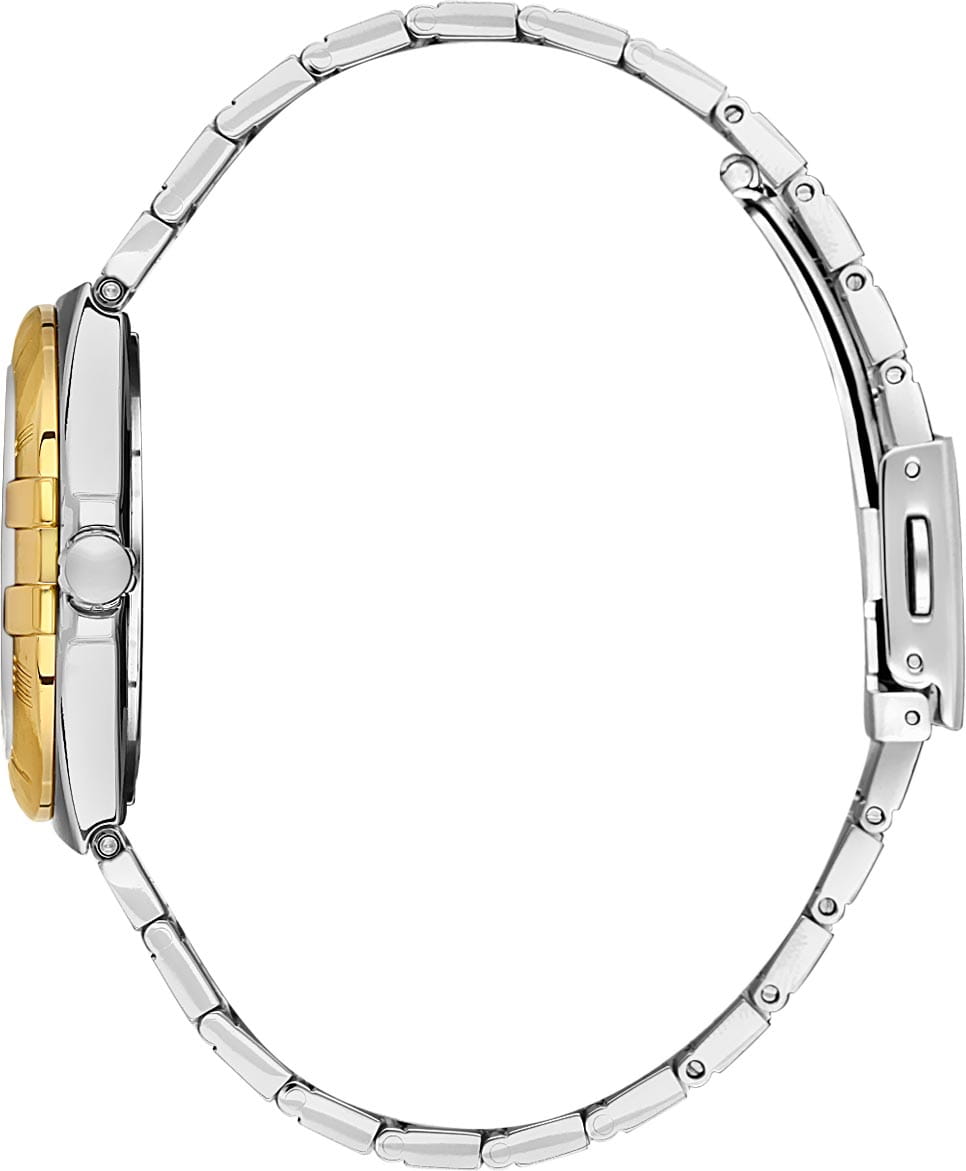 Женские кварцевые часы Santa Barbara Polo & Racquet Club — это элегантный аксессуар, притягивающий восхищённые взгляды. Корпус диаметром 34 мм и высотой 36 мм выполнен из нержавеющей стали. БезельБезельВнешний ободок, закрепляющий стекло. В спортивных часах так называется поворотное кольцо с делениями на циферблате, выполняет роль таймера – замеряет отрезки времени на шкале. Неподвижный безель – элемент декора. Однонаправленно вращающийся безель на дайверских часах позволяет фиксировать моменты погружения и выныривания на поверхность. с IP-покрытиемIP-покрытиеМетод ионного напыления. Демонстрирует повышенную устойчивость к истиранию, окислению и химическим веществам. Под воздействием высокого давления и температуры около 1500°C молекулы металла надёжно соединяются с частицами корпуса часов. оформлен римскими цифрами, придавая дизайну классическую выразительность. Циферблат золотистого цвета выполнен по технологии Sunray («солнечные лучи»), дополнен накладными метками в виде точек, инкрустированных кристаллами, а также фирменным логотипом. Циферблат защищён минеральным стекломМинеральное стеклоМинеральное стекло представляет собой искусственно выращенный минерал кварца. Такое стекло отличается особой устойчивостью к повреждениям и царапинам. Уступает по некоторым качествам сапфировому стеклу.. Механизм — кварцевый калибр Miyota 2035. Часы оснащены стальным браслетом с частичным IP-покрытиемIP-покрытиеМетод ионного напыления. Демонстрирует повышенную устойчивость к истиранию, окислению и химическим веществам. Под воздействием высокого давления и температуры около 1500°C молекулы металла надёжно соединяются с частицами корпуса часов. и раскладной застёжкойРаскладная застёжкаТакой тип застёжки используется только на браслетах из металла. Она никогда не раскрывается полностью, происходит разделение на 2 и более частей. Раскладывающая застёжка снизит вероятность потери часов к минимуму.. Водонепроницаемость 50 м позволяет использовать часы в повседневных условиях. Идеальный выбор для тех, кто ценит блеск, стиль и качество.