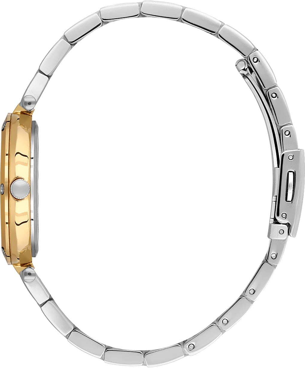 Женские кварцевые Santa Barbara Polo & Racquet Club SB.1.10594-4 — воплощение элегантности и технического совершенства. Изысканный корпус из нержавеющей стали с IP-покрытиемIP-покрытиеМетод ионного напыления. Демонстрирует повышенную устойчивость к истиранию, окислению и химическим веществам. Под воздействием высокого давления и температуры около 1500°C молекулы металла надёжно соединяются с частицами корпуса часов. золотистого цвета, диаметром 34 мм, что делает их устойчивыми к внешним воздействиям и придает благородный вид. Стрелки и метки с люминесцентным покрытиемЛюминесцентное покрытиеПозволяет считывать показания времени в темноте. Производители наносят на стрелки, часовые индексы, безель или поверхность циферблата светонакопительный состав, дающий холодное свечение., обеспечивающим хорошую читаемость в темноте. Изящный циферблат защищён минеральным стекломМинеральное стеклоМинеральное стекло представляет собой искусственно выращенный минерал кварца. Такое стекло отличается особой устойчивостью к повреждениям и царапинам. Уступает по некоторым качествам сапфировому стеклу., устойчивое к царапинам и механическим повреждениям. Браслет из стали с частичным IP-покрытиемIP-покрытиеМетод ионного напыления. Демонстрирует повышенную устойчивость к истиранию, окислению и химическим веществам. Под воздействием высокого давления и температуры около 1500°C молекулы металла надёжно соединяются с частицами корпуса часов. на раскладной застёжкеРаскладная застёжкаТакой тип застёжки используется только на браслетах из металла. Она никогда не раскрывается полностью, происходит разделение на 2 и более частей. Раскладывающая застёжка снизит вероятность потери часов к минимуму. обеспечивает комфортное и безопасное ношение. Декоративный безельБезельВнешний ободок, закрепляющий стекло. В спортивных часах так называется поворотное кольцо с делениями на циферблате, выполняет роль таймера – замеряет отрезки времени на шкале. Неподвижный безель – элемент декора. Однонаправленно вращающийся безель на дайверских часах позволяет фиксировать моменты погружения и выныривания на поверхность. украшен винтами. Водонепроницаемость 50 метров позволит защитить корпус от случайных брызг или капель дождя. Идеальный выбор для тех, кто ценит элегантный дизайн и качество.