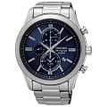 Современные японские наручные мужские часы. Круглый корпус  часов выполнен из  стали с антикоррозийными свойствами. Синий фон циферблата и стальные элементы дизайна. Водонепроницаемость 10 ATM. Минеральное стекло Hardlex, устойчивое к появлению царапин.