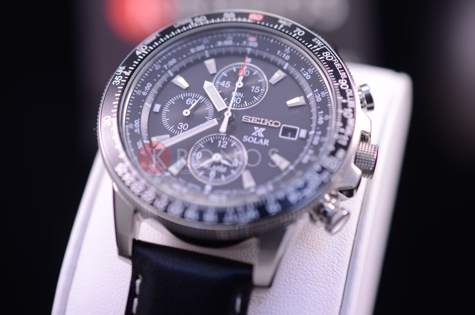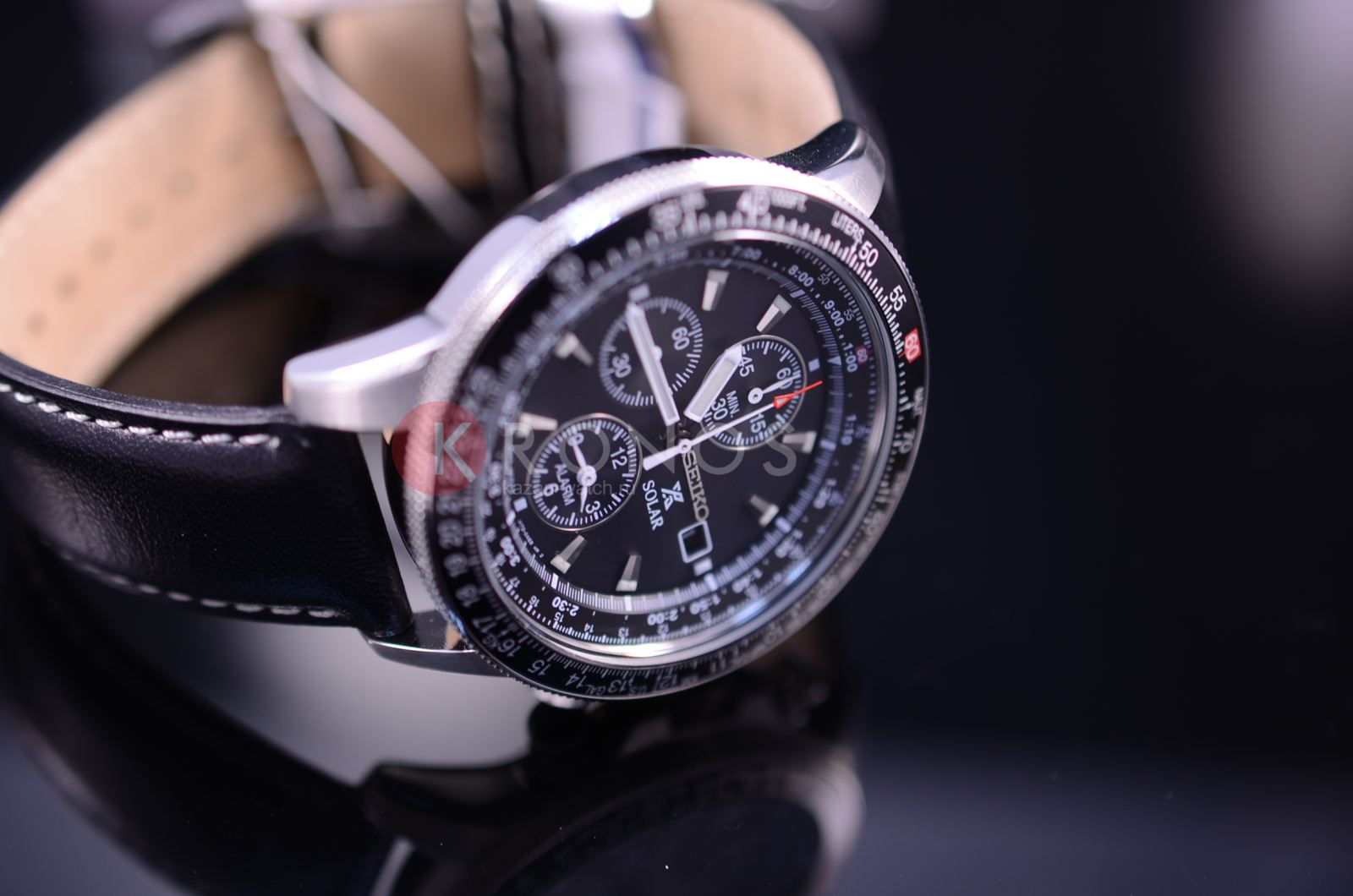 Успешные люди, желающие идти в ногу со временем, выбирают инновационные и надежные часы марки Seiko. Кварцевый хронограф с солнечной подзарядкой. Механизм V172. Секундомер, макс. отсчет 60 минут с точностью 1/5 сек, измерение отрезков времени. Индикация числа. Будильник. Вращающийся безель с логарифмической линейкой. Покрытие LumiBrite. Устойчивое к механическим воздействиям многослойное минеральное стекло изготовленное по технологии Hardlex. Стальной корпус. Ремень из телячьей кожи.