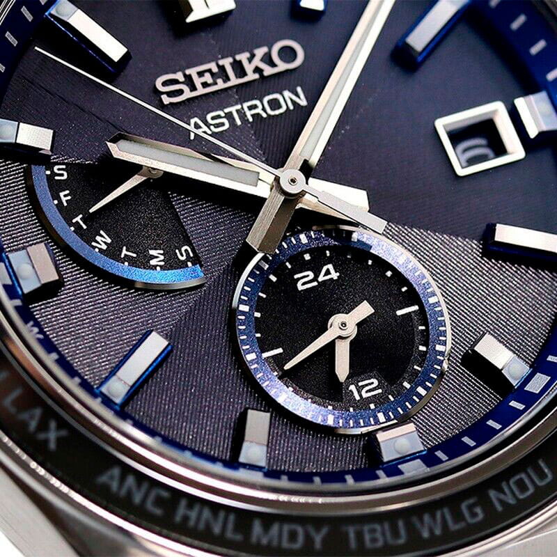 Мужские японские часы Seiko Astron Nexter Solar Radio SBXY051 являются идеальным выбором для тех, кто ценит сочетание передовых технологий и элегантного дизайна. Эти часы оснащены сапфировым стекломСапфировое стеклоПрочный и надёжный материал из кристалла сапфира синтетического происхождения, характеризующийся особой твёрдостью и устойчивостью к царапинам и повреждениям. с антибликовое покрытиемАнтибликовое покрытиеСлой оксида металла в 0,13-0,3 микрон, благодаря которому стекло часов не бликует и не отражает свет. Антибликовое покрытие уменьшает отражение света в 10 раз, обеспечивая отличную читаемость показателей циферблата., что обеспечивает защиту циферблата от царапин и ударов, подчеркивая их стойкость и долговечность. Внутри устройства находится солнечный кварцевый механизм калибром 8B63, который гарантирует отличное время и надежность в любых условиях. БезельБезельВнешний ободок, закрепляющий стекло. В спортивных часах так называется поворотное кольцо с делениями на циферблате, выполняет роль таймера – замеряет отрезки времени на шкале. Неподвижный безель – элемент декора. Однонаправленно вращающийся безель на дайверских часах позволяет фиксировать моменты погружения и выныривания на поверхность. из керамики обеспечивает дополнительную защиту. Часы имеют класс водозащиты 100 метров позволяющий заниматься плаванием, нырянием и другими водными видами спорта без ограничений. Корпус и браслет часов изготовлены из титана, придавая им современный вид и увеличивает устойчивость к повреждениям. Удобное окошко даты находится в положении 3 часа, что делает эти часы не только стильными, но и практичными для повседневного использования. Стрелки часов оснащены люминесцентным покрытиемЛюминесцентное покрытиеПозволяет считывать показания времени в темноте. Производители наносят на стрелки, часовые индексы, безель или поверхность циферблата светонакопительный состав, дающий холодное свечение., которые обеспечивают отличную видимость в темноте. Стальной браслет на раскладной застёжкеРаскладная застёжкаТакой тип застёжки используется только на браслетах из металла. Она никогда не раскрывается полностью, происходит разделение на 2 и более частей. Раскладывающая застёжка снизит вероятность потери часов к минимуму. обеспечивает комфортное ношения. Часы из коллекции Astron оснащены следующими функциями: дата, день недели, вечный календарьВечный календарьКлассическое часовое усложнение, представляющее собой календарь, рассчитанный на несколько лет вперёд (стандартно – до 2099 года). Определяет текущую дату, день недели, месяц. до 2100 года, второй часовой поясВторой часовой поясФункция, позволяющая отображать время двух часовых поясов одновременно., радиоуправление, антимагнитная защита и функция мирового времениМировое время Полезное часовое усложнение, отображающее время в основных городах и известных областях по всему миру, оно связано с часовыми поясами, удобно для путешественников и бизнесменов. . Работа в обычном режиме до 6 месяцев, работа в режиме энергосбережения до 24 месяцев. Функция предотвращения перезарядки.