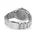 Мужские кварцевые часы Seiko — это высокотехнологичный аксессуар с солнечным питанием и радиосинхронизацией. Корпус размером 40 мм и толщиной 9,5 мм выполнен из гипоаллергенного титана. Циферблат чёрного цвета оформлен индексами и стрелками. Окошко даты расположено в положении 3 часов. Стрелки и метки с люминесцентным покрытиемЛюминесцентное покрытиеПозволяет считывать показания времени в темноте. Производители наносят на стрелки, часовые индексы, безель или поверхность циферблата светонакопительный состав, дающий холодное свечение. LumiBrite, обеспечивающим хорошую читаемость в темноте. Циферблат защищён выпуклым сапфировым стекломСапфировое стеклоПрочный и надёжный материал из кристалла сапфира синтетического происхождения, характеризующийся особой твёрдостью и устойчивостью к царапинам и повреждениям. с антибликовым покрытиемАнтибликовое покрытиеСлой оксида металла в 0,13-0,3 микрон, благодаря которому стекло часов не бликует и не отражает свет. Антибликовое покрытие уменьшает отражение света в 10 раз, обеспечивая отличную читаемость показателей циферблата. для максимальной прозрачности. Механизм — кварцевый с технологией Tough SolarTough SolarТехнология основана на подзарядке аккумулятора от источника солнечного света, специальная панель улавливает солнечные лучи и преобразует их в энергию для работы часов. Достаточно пары минут нахождения на солнце для функционирования часов в течении суток., обеспечивающей работу до 9 месяцев в обычном режиме и до 2 лет в режиме энергосбережения. Часы поддерживают автоматическую радиокоррекцию времени, имеют функцию вечного календаряВечный календарьКлассическое часовое усложнение, представляющее собой календарь, рассчитанный на несколько лет вперёд (стандартно – до 2099 года). Определяет текущую дату, день недели, месяц. (до 2100 года), устойчивы к магнитным полям и оснащены защитой от перезарядки. Часы оснащены титановым браслетом шириной 20 мм с раскладной застёжкойРаскладная застёжкаТакой тип застёжки используется только на браслетах из металла. Она никогда не раскрывается полностью, происходит разделение на 2 и более частей. Раскладывающая застёжка снизит вероятность потери часов к минимуму.. Водонепроницаемость 100 м позволяет использовать часы для плавания и повседневного ношения. Идеальный выбор для тех, кто ценит точность, лёгкость и передовые технологии.