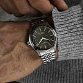 Мужские механические часы Seiko Presage Classic SPB465 — это отражение японского мастерства и внимания к деталям. Серия вдохновлена цветами, текстурами и материалами традиционных японских ремёсел, что нашло своё отражение в изысканном дизайне и высокой функциональности модели. мЧасы оснащены калибром 6R55 — надёжным механизмом с автоподзаводом и возможностью ручной подзаводки. Механизм работает на частоте 21 600 полуколебаний в час, имеет 24 драгоценных камня и обеспечивает запас хода до 72 часов. Также реализована функция стоп-секунды для точной установки времени и защита от магнитных полей до 4800 А/м. Циферблат чёрного цвета выполнен в стиле «широ-иро» — в оттенке неотбелённого шелка, который при разном освещении играет глубокими переливами. Его поверхность украшена тонкой текстурой, создающей ощущение благородства и изысканности. Метки выполнены в виде аккуратных штрихов, а информация о дате вынесена в окошко в положении 3 часов. Защиту циферблата обеспечивает сапфировое стеклоСапфировое стеклоПрочный и надёжный материал из кристалла сапфира синтетического происхождения, характеризующийся особой твёрдостью и устойчивостью к царапинам и повреждениям. выпуклой формы с антибликовым покрытием с обеих сторон. Корпус диаметром 40,2 мм изготовлен из нержавеющей стали и дополнен прозрачной завинчивающейся задней крышкой, через которую можно рассмотреть работу механизма. Браслет выполнен из стали и оснащён раскладной застёжкойРаскладная застёжкаТакой тип застёжки используется только на браслетах из металла. Она никогда не раскрывается полностью, происходит разделение на 2 и более частей. Раскладывающая застёжка снизит вероятность потери часов к минимуму., обеспечивающей комфорт и уверенную фиксацию на запястье. Часы водонепроницаемы до 100 метров , что позволяет использовать их при плавании или занятиях водными видами спорта. Эти часы станут универсальным аксессуаром для тех, кто ценит сочетание культурного наследия, технологий и эстетики — идеальный выбор для повседневной носки и торжественных случаев.