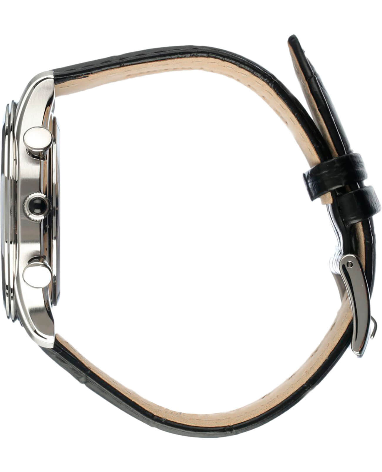 Элегантный хронографХронографФункция позволяет измерять отрезки времени с особой точностью: часы, минуты, секунды. Верным признаком хронографа является наличие на циферблате 3 дополнительных окошек-счётчиков. дополнен спортивными деталями: шкала тахиметраТахиметрРазмеченная шкала, располагается на ободке или безеле часов. Тахиметр позволяет рассчитать скорость на определённом участке пути, расстояние измеряется в километрах или милях., отображение даты, ретроградный указатель дня недели, окошко будильника и секундомера. Аксессуар будет одинаково хорошо дополнять как повседневный, так и деловой образ. Чёрный ремешок из натуральной кожи гармонично сочетается с отполированным кабашоном на заводной головке. Циферблат защищён прочным минеральным стеклом Hardlex, отличающимся устойчивостью к царапинам. В основе работы – кварцевый японский механизм Seiko 7T86. Надёжный корпус из нержавеющей стали 316L выдерживает высокие нагрузки. Наручные часы сохраняют водонепроницаемость при давлении 50 бар. Диаметр корпуса: 40 мм.