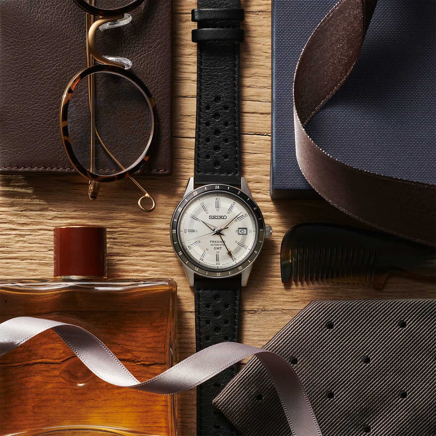 Seiko Presage Style60’s SSK011J1 — гармоничное сочетание винтажной эстетики 60-х годов и современных механических технологий, воплощённое в изысканной и универсальной форме. Корпус диаметром 40.8 мм выполнен из нержавеющей стали с сатинированной и полированной отделкой. Циферблат защищён изогнутым стеклом HardlexМинеральное стеклоМинеральное стекло представляет собой искусственно выращенный минерал кварца. Такое стекло отличается особой устойчивостью к повреждениям и царапинам. Уступает по некоторым качествам сапфировому стеклу., устойчивым к повседневным повреждениям. Циферблат оформлен в минималистичном стиле: накладные серебристые индексы и стрелки с люминесцентным покрытиемЛюминесцентное покрытиеПозволяет считывать показания времени в темноте. Производители наносят на стрелки, часовые индексы, безель или поверхность циферблата светонакопительный состав, дающий холодное свечение. обеспечивают хорошую читаемость. Окно даты расположено на позиции «3 часа». Внутри установлен автоматический механизм Seiko 4R34 с возможностью ручного подзавода. Механизм на 24 камнях работает с частотой 21 600 полуколебаний в час и обеспечивает запас хода около 41 часа. Модель оснащена ремешком на стандартной застежке, обеспечивающей удобство и надёжность при повседневной носке. Водонепроницаемость 50 метров делает SSK011J1 отличным выбором для повседневного стиля и формальных образов. Presage Style60’s — это уважение к традициям и современный подход к классике японского часового искусства.