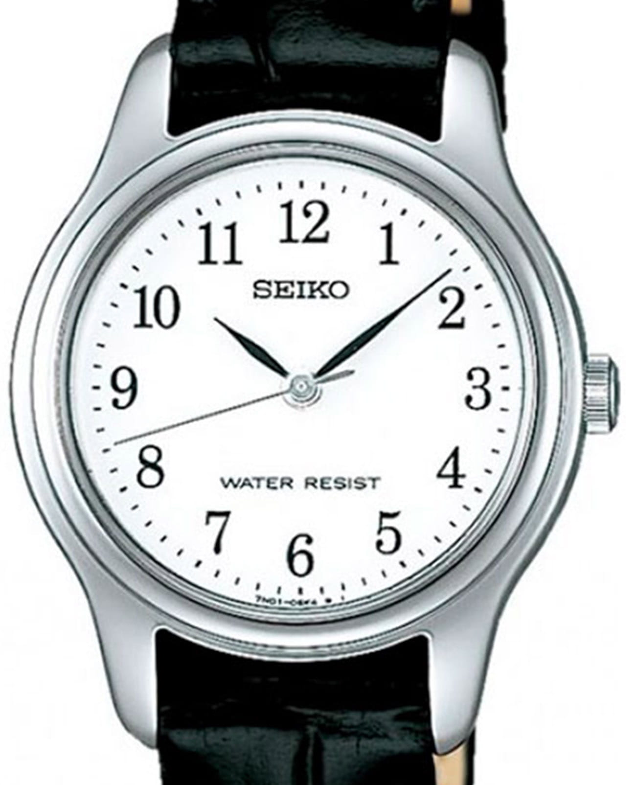 Женские кварцевые часы Seiko — это надёжный и универсальный аксессуар. Корпус диаметром 25,8 мм и толщиной 6,2 мм выполнен из нержавеющей стали. Циферблат белого цвета оформлен арабскими цифрами и стрелками, включая центральную секундную стрелку. Циферблат защищён прочным закалённым минеральным стеклом Hardlex минеральным стекломМинеральное стеклоМинеральное стекло представляет собой искусственно выращенный минерал кварца. Такое стекло отличается особой устойчивостью к повреждениям и царапинам. Уступает по некоторым качествам сапфировому стеклу.. Механизм — японское кварцевое движение калибра 7N01 с высокой точностью хода (±10–15 сек. в месяц). Часы оснащены чёрным кожаным ремешком на классической пряжке. Водонепроницаемость 30 м позволяет использовать часы в повседневных условиях. Идеальный выбор для тех, кто ценит японское качество и классический дизайн.
