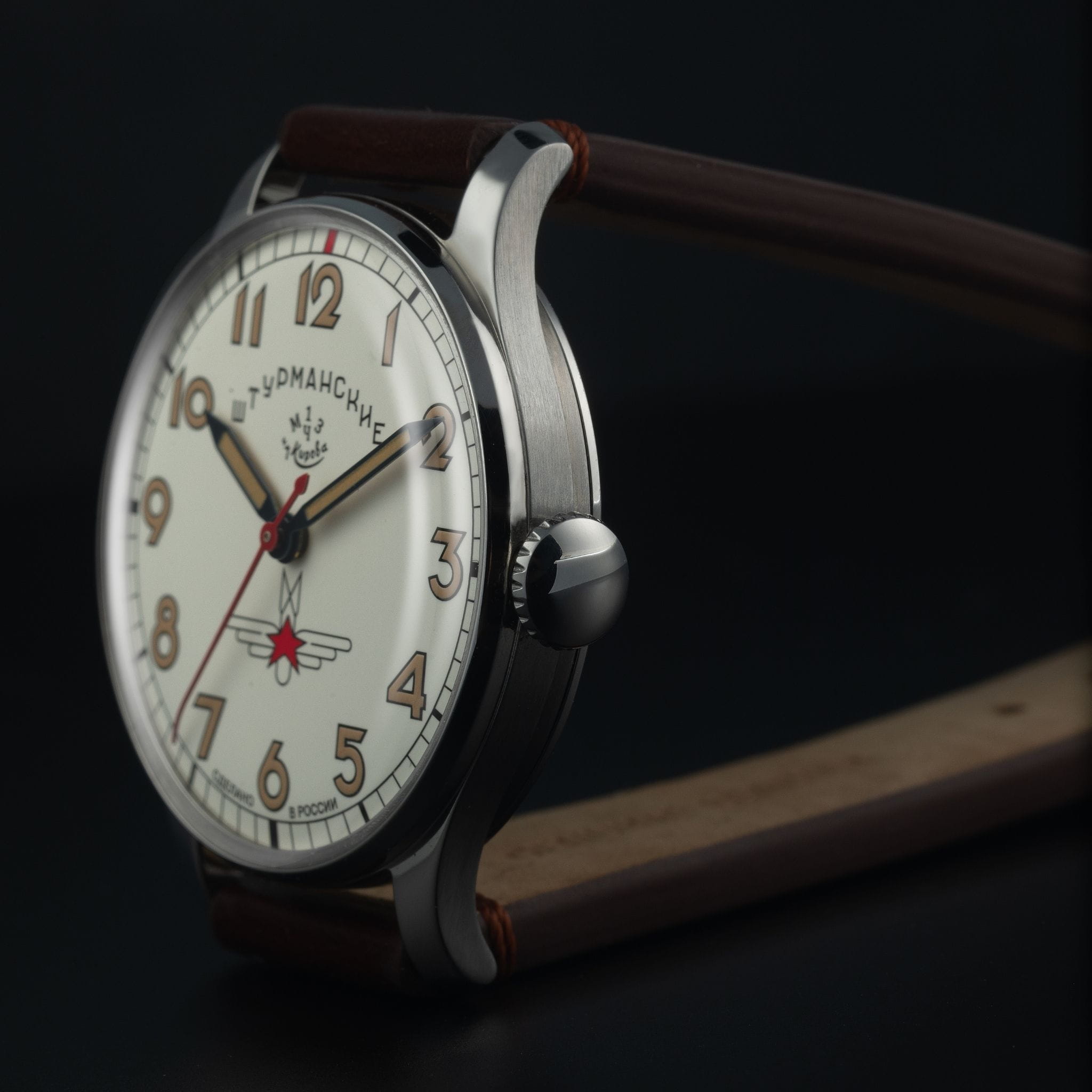 Лимитированные мужские российские механические часы Штурманские Гагарин Наследие 2609/3771470, механический механизм (автоматический калибр) с высокой точностью. Минеральное стеклоМинеральное стеклоМинеральное стекло представляет собой искусственно выращенный минерал кварца. Такое стекло отличается особой устойчивостью к повреждениям и царапинам. Уступает по некоторым качествам сапфировому стеклу. устойчивое к мелким механическим повреждениям. Класс водозащиты: 50 метров, позволит защитить корпус от случайных брызг или капель дождя. Корпус часов изготовлен из стали. Кожаный ремешок на стандартной застёжке. Стрелки и метки с люминесцентным покрытиемЛюминесцентное покрытиеПозволяет считывать показания времени в темноте. Производители наносят на стрелки, часовые индексы, безель или поверхность циферблата светонакопительный состав, дающий холодное свечение.. Чёткая, читаемая минутная шкала уходит за приделы видимой области циферблата, подчёркивая изящность ободка корпуса. Оцифровка циферблата – отличительная особенность данной модели, её дизайн не изменился с самой первый, гагаринской серии. Заводная головка конической формы с удобной насечкой повторяет дизайн оригинальной модели.