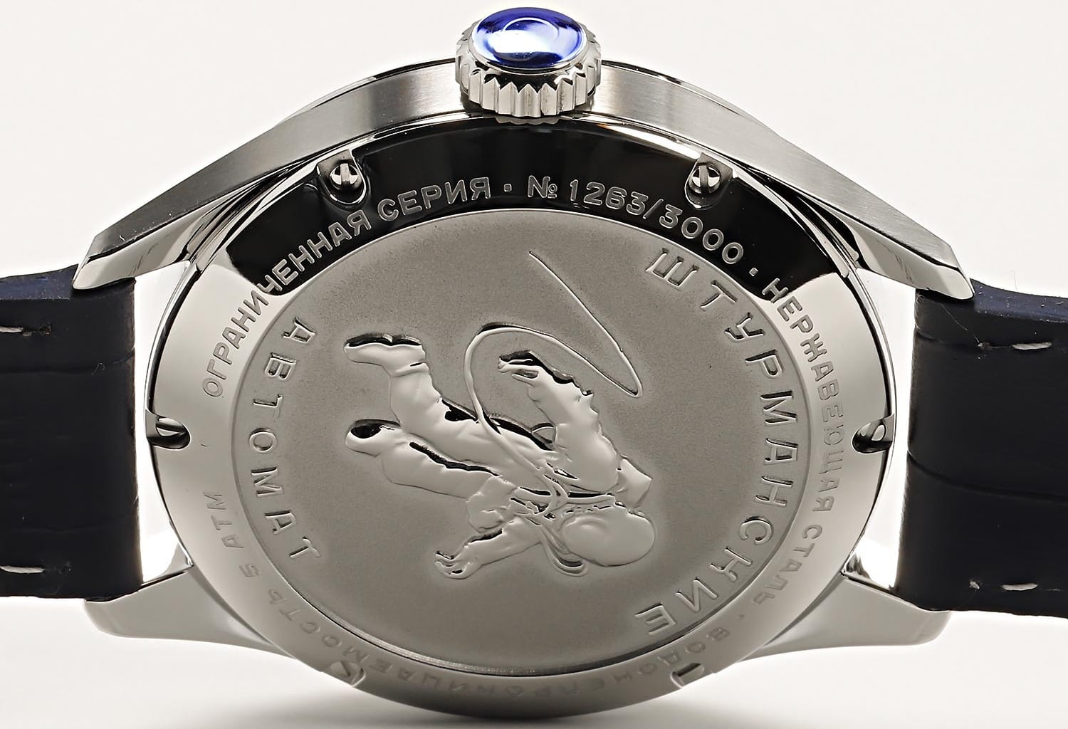 Мужские российские механические часы с минеральным стекломМинеральное стеклоМинеральное стекло представляет собой искусственно выращенный минерал кварца. Такое стекло отличается особой устойчивостью к повреждениям и царапинам. Уступает по некоторым качествам сапфировому стеклу. Штурманские Открытый Космос Day-Date Автомат NH36/1891771, механический механизм (автоматический калибр) с высокой точностью. Лимитированная серия - 3000 экземпляров. Класс водозащиты: 50 метров, позволит защитить корпус от случайных брызг или капель дождя. Корпус часов изготовлен из стали. Кожаный ремешок на стандартной застёжке. Окошки дня недели и даты находятся в положении 3 часа. Сзади украшены изображением астронавта в открытом космосе по мотивам картины Алексея Леонова.