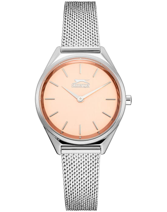 Женские наручные часы Slazenger SL.09.1852.3.06 сочетают в себе элегантный дизайн и надежность современных технологий. Модель обладает круглым корпусом диаметром 32 мм, изготовленным из суперметалла с серебряным покрытием, что обеспечивает высокую устойчивость к внешним воздействиям. Браслет миланского плетения на раскладном замкеРаскладной замокДанный вариант застежки используется только на часах с металлическим браслетом. Отличительная особенность такого крепления в том, что длина браслета становится универсальной и вы можете самостоятельно отрегулировать нужный вам размер – застежка просто двигается по браслету часов., гарантируюет комфортное ношение. Циферблат оснащен индексами для лучшей читаемости времени. Для защиты используется минеральное стеклоМинеральное стеклоМинеральное стекло представляет собой искусственно выращенный минерал кварца. Такое стекло отличается особой устойчивостью к повреждениям и царапинам. Уступает по некоторым качествам сапфировому стеклу., обеспечивающее прочную защиту от царапин. Часы работают на японском кварцевом механизме, что гарантирует точное время без необходимости подзаводки. Водонепроницаемость часов составляет 3 атмосферы (30 метров), что позволяет использовать их в повседневной жизни, но не рекомендуется для плавания или занятий водными видами спорта.