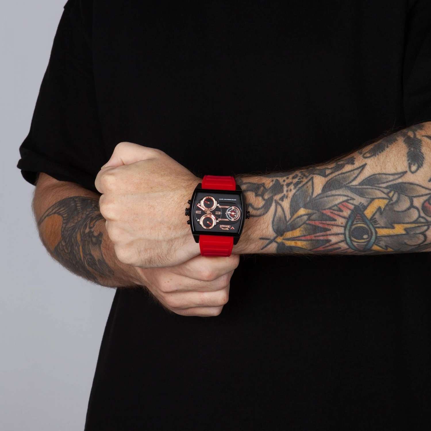 Часы Slazenger SL.09.2208.2.04 — это стильный и функциональный аксессуар для мужчин, созданный британским брендом, известным своим качеством и надежностью. Эти кварцевые часы отличаются современным дизайном и высоким уровнем функциональности. Металлический корпус с серым IP-покрытиемIP-покрытиеМетод ионного напыления. Демонстрирует повышенную устойчивость к истиранию, окислению и химическим веществам. Под воздействием высокого давления и температуры около 1500°C молекулы металла надёжно соединяются с частицами корпуса часов. обеспечивает прочность и долговечность, а минеральное стеклоМинеральное стеклоМинеральное стекло представляет собой искусственно выращенный минерал кварца. Такое стекло отличается особой устойчивостью к повреждениям и царапинам. Уступает по некоторым качествам сапфировому стеклу. защищает циферблат от царапин и повреждений. Благодаря водозащите уровня WR 50, часы могут выдерживать случайные контакты с водой, такие как дождь или брызги. Часы снабжены резиновым ремешком красного цвета, который не только обеспечивает удобство и комфорт в ношении, но и придает им стильный и спортивный вид. Классическая застежка ремешка позволяет легко и надежно фиксировать часы на запястье. Размеры корпуса составляют 49 мм в ширину, 41,5 мм в высоту и 14 мм в толщину, что делает их заметным и выразительным аксессуаром на руке. Люминесцентное покрытиеЛюминесцентное покрытиеПозволяет считывать показания времени в темноте. Производители наносят на стрелки, часовые индексы, безель или поверхность циферблата светонакопительный состав, дающий холодное свечение. на стрелках и метках обеспечивает отличную видимость в темноте. Часы также оснащены функциями отображения второго часового поясаВторой часовой поясФункция, позволяющая отображать время двух часовых поясов одновременно., даты и дня недели, что делает их идеальным выбором для деловых поездок и путешествий.