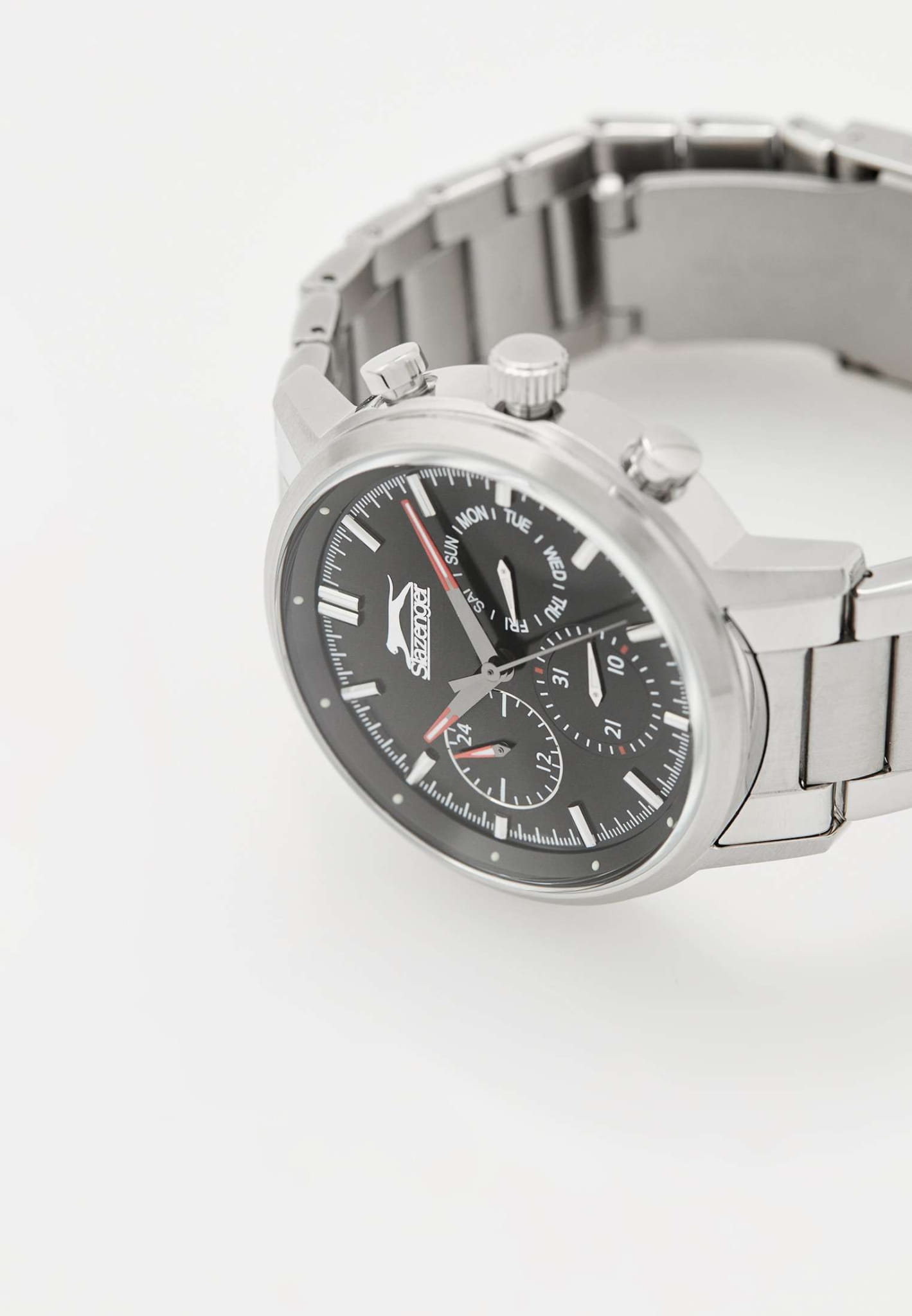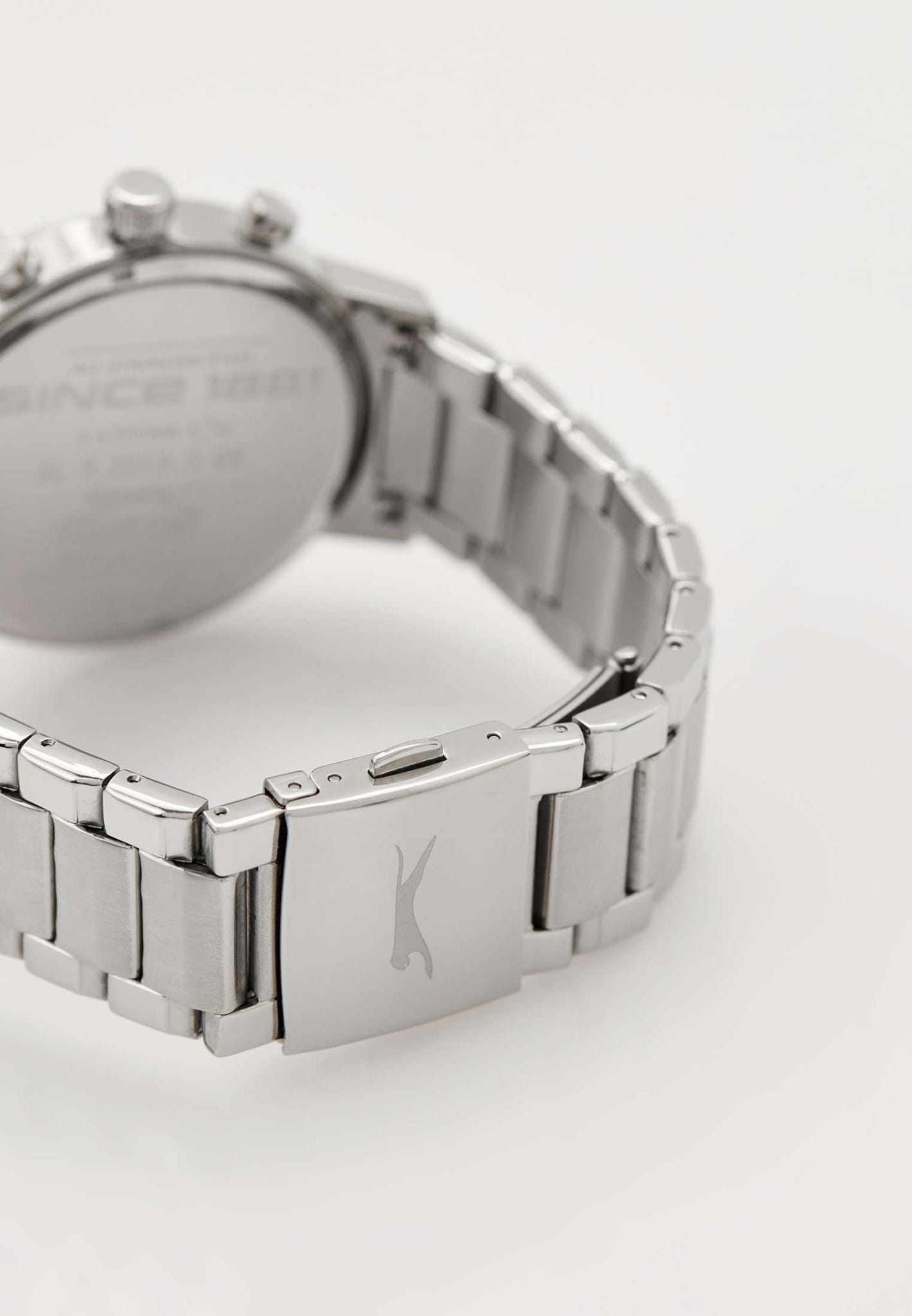 Часы Slazenger SL.09.2213.2.05 представляют собой элегантное сочетание британского стиля и современных технологий, создавая идеальный аксессуар для мужчин, которые ценят как функциональность, так и внешний вид. Эта модель оснащена кварцевым механизмом, обеспечивающим точность хода и долговечность. Корпус часов, выполненный из прочного суперметалла, имеет круглую форму и диаметр 44 мм, что придает им классический и универсальный вид. Минеральное стеклоМинеральное стеклоМинеральное стекло представляет собой искусственно выращенный минерал кварца. Такое стекло отличается особой устойчивостью к повреждениям и царапинам. Уступает по некоторым качествам сапфировому стеклу. защищает циферблат, устойчивый к царапинам и повреждениям, а его черный цвет добавляет оригинальности и строгости образу. Серебристый браслет, также изготовленный из суперметалла, обеспечивает комфорт и надежную фиксацию на запястье, подчеркивая стиль владельца, он оснащён раскладной застёжкойРаскладная застёжкаТакой тип застёжки используется только на браслетах из металла. Она никогда не раскрывается полностью, происходит разделение на 2 и более частей. Раскладывающая застёжка снизит вероятность потери часов к минимуму. с системой блокировки, обеспечивая надёжную фиксацию на запястье. Часы обладают степенью водозащиты WR 50 (5 ATM), что позволяет использовать их в различных условиях, не опасаясь за их сохранность. Люминесцентное покрытиеЛюминесцентное покрытиеПозволяет считывать показания времени в темноте. Производители наносят на стрелки, часовые индексы, безель или поверхность циферблата светонакопительный состав, дающий холодное свечение. обеспечивает удобное считывание времени в темноте, а часовые индексы на циферблате делают отображение времени четким и понятным. Модель также оснащена функцией отображения даты, добавляя практичности и удобства в повседневной жизни. Этот аксессуар прекрасно подойдет для деловых встреч, повседневного ношения или особых случаев, сочетая в себе стиль и функциональность.