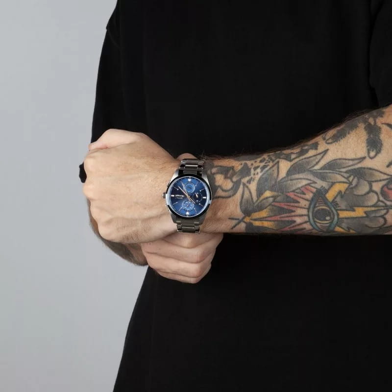 Часы Slazenger SL.09.2215.2.04 представляют собой стильные мужские наручные часы, которые сочетают в себе элегантный дизайн и функциональность. Изготовленные в Англии, эти кварцевые часы оснащены прочным металлическим корпусом и металлическим браслетом с раскладной застёжкойРаскладная застёжкаТакой тип застёжки используется только на браслетах из металла. Она никогда не раскрывается полностью, происходит разделение на 2 и более частей. Раскладывающая застёжка снизит вероятность потери часов к минимуму., который обеспечивает надежную фиксацию на запястье, а безельБезельВнешний ободок, закрепляющий стекло. В спортивных часах так называется поворотное кольцо с делениями на циферблате, выполняет роль таймера – замеряет отрезки времени на шкале. Неподвижный безель – элемент декора. Однонаправленно вращающийся безель на дайверских часах позволяет фиксировать моменты погружения и выныривания на поверхность. с синим IP-покрытиемIP-покрытиеМетод ионного напыления. Демонстрирует повышенную устойчивость к истиранию, окислению и химическим веществам. Под воздействием высокого давления и температуры около 1500°C молекулы металла надёжно соединяются с частицами корпуса часов. придаёт аксессуару современный вид и дополнительную прочность. Минеральное стеклоМинеральное стеклоМинеральное стекло представляет собой искусственно выращенный минерал кварца. Такое стекло отличается особой устойчивостью к повреждениям и царапинам. Уступает по некоторым качествам сапфировому стеклу. защищает синий циферблат от царапин, а водозащита WR 50 позволяет использовать их в условиях повышенной влажности. Диаметр корпуса составляет 43 мм, а толщина — 14 мм, что делает часы удобными для ежедневного ношения. Ширина ремешка — 22 мм, что обеспечивает комфорт и стильный вид на руке. Дополнительные функции включают отображение второго часового поясаВторой часовой поясФункция, позволяющая отображать время двух часовых поясов одновременно., дня недели и текущего времени в 24-часовом формате, а также наличие окошка даты для удобства пользователя. Стрелки снабжены люминесцентным покрытиемЛюминесцентное покрытиеПозволяет считывать показания времени в темноте. Производители наносят на стрелки, часовые индексы, безель или поверхность циферблата светонакопительный состав, дающий холодное свечение., что позволяет легко считывать время в темноте. Часы также оснащены тахиметромТахиметрРазмеченная шкала, располагается на ободке или безеле часов. Тахиметр позволяет рассчитать скорость на определённом участке пути, расстояние измеряется в километрах или милях., что добавляет им функциональности и может быть полезно для измерения скорости.