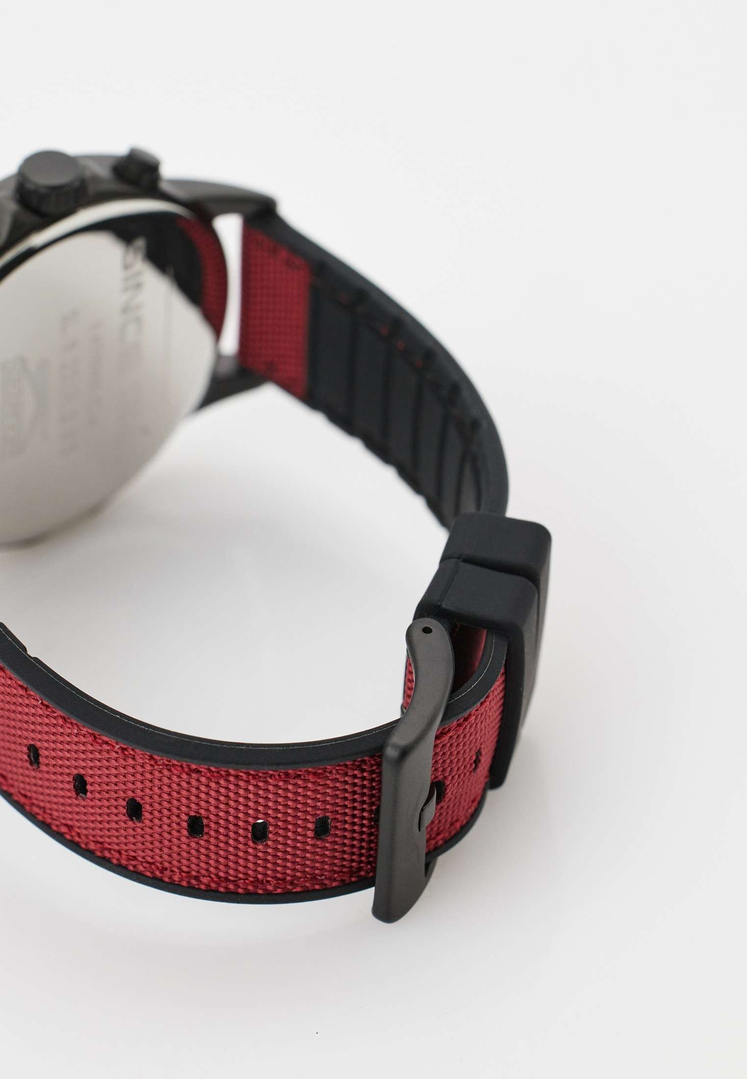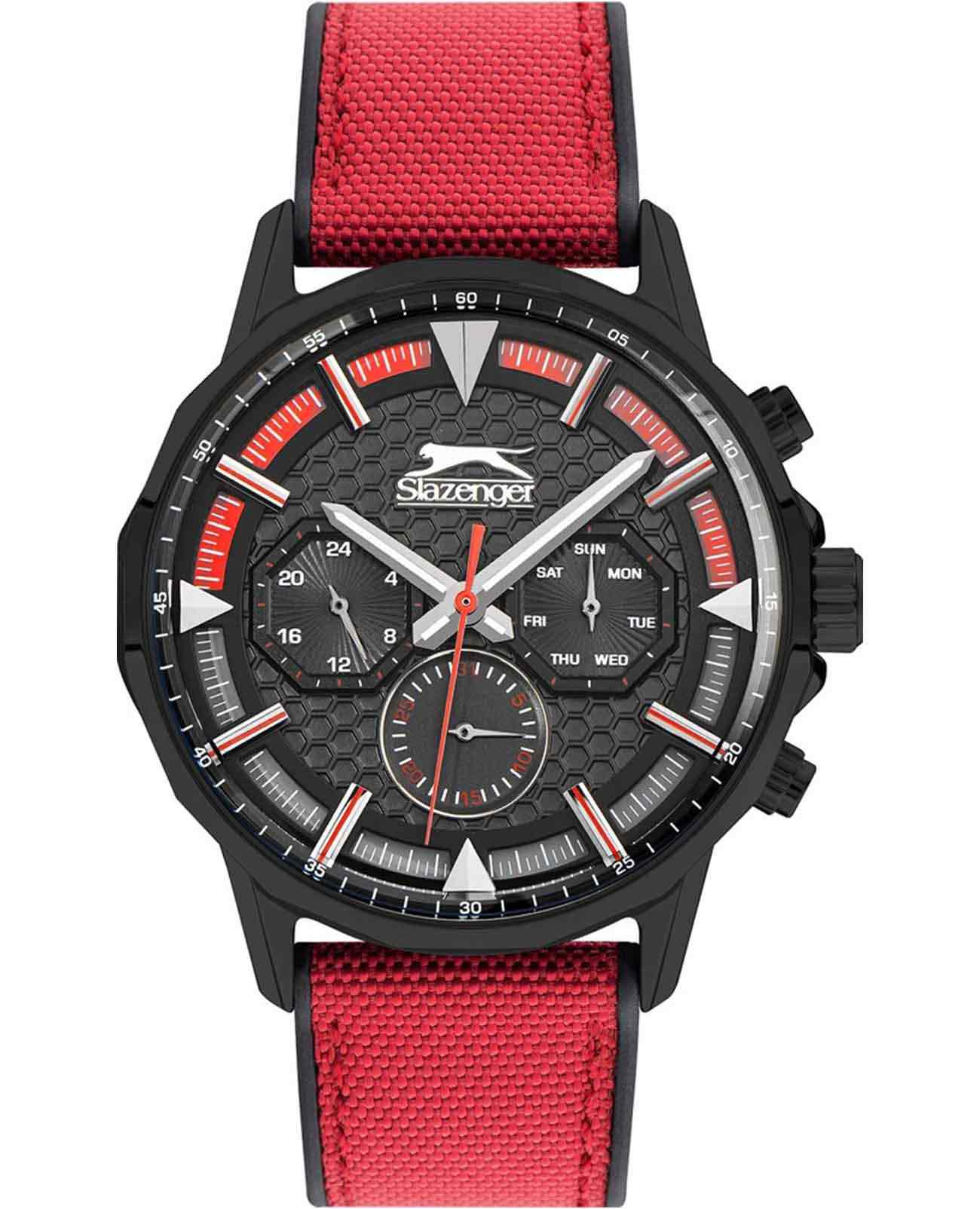 Стильные мужские наручные часы Slazenger SL.09.2217.2.05 станут идеальным аксессуаром для современного мужчины. Этот британский бренд славится своим качеством и надежностью, а данная модель не является исключением. Часы оснащены кварцевым механизмом, что обеспечивает точность хода и долговечность использования. Корпус часов выполнен из металла с черным IP-покрытиемIP-покрытиеМетод ионного напыления. Демонстрирует повышенную устойчивость к истиранию, окислению и химическим веществам. Под воздействием высокого давления и температуры около 1500°C молекулы металла надёжно соединяются с частицами корпуса часов., а прочное минеральное стеклоМинеральное стеклоМинеральное стекло представляет собой искусственно выращенный минерал кварца. Такое стекло отличается особой устойчивостью к повреждениям и царапинам. Уступает по некоторым качествам сапфировому стеклу. защищает циферблат от царапин и повреждений. Элегантный красный тканевый ремешок на черном силиконовом основании с классической застежкой, что гарантирует комфортное ношение на запястье. Ширина браслета составляет 22 мм, что придает часам солидный вид. Диаметр корпуса равен 45 мм, а толщина 12 мм, что делает эту модель заметной, но в то же время не громоздкой. Водозащита уровня WR 50 позволяет использовать часы в повседневной жизни, не беспокоясь о случайных попаданиях воды. Стрелки снабжены люминесцентным покрытиемЛюминесцентное покрытиеПозволяет считывать показания времени в темноте. Производители наносят на стрелки, часовые индексы, безель или поверхность циферблата светонакопительный состав, дающий холодное свечение., что позволяет легко считывать время в темноте. Функциональные возможности часов включают отображение даты, дня недели и времени в 24-часовом формате на дополнительных малых циферблатах. Это делает модель не только стильной, но и практичной в использовании.