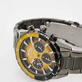 Часы Slazenger SL.09.2236.2.02 — это стильная и надежная модель, которая станет отличным выбором для активного современного мужчины. Крупный корпус диаметром 46 мм и браслет с раскладной застёжкойРаскладная застёжкаТакой тип застёжки используется только на браслетах из металла. Она никогда не раскрывается полностью, происходит разделение на 2 и более частей. Раскладывающая застёжка снизит вероятность потери часов к минимуму. с черным IP-покрытиемIP-покрытиеМетод ионного напыления. Демонстрирует повышенную устойчивость к истиранию, окислению и химическим веществам. Под воздействием высокого давления и температуры около 1500°C молекулы металла надёжно соединяются с частицами корпуса часов. выполнены из прочного металла, что обеспечивает комфорт и долговечность. На безельБезельВнешний ободок, закрепляющий стекло. В спортивных часах так называется поворотное кольцо с делениями на циферблате, выполняет роль таймера – замеряет отрезки времени на шкале. Неподвижный безель – элемент декора. Однонаправленно вращающийся безель на дайверских часах позволяет фиксировать моменты погружения и выныривания на поверхность. нанесено черное и желтое IP-покрытиеIP-покрытиеМетод ионного напыления. Демонстрирует повышенную устойчивость к истиранию, окислению и химическим веществам. Под воздействием высокого давления и температуры около 1500°C молекулы металла надёжно соединяются с частицами корпуса часов.. Минеральное стеклоМинеральное стеклоМинеральное стекло представляет собой искусственно выращенный минерал кварца. Такое стекло отличается особой устойчивостью к повреждениям и царапинам. Уступает по некоторым качествам сапфировому стеклу. защищает текстурированный черно-желтый циферблат с градиентом от случайных царапин, а водозащита уровня WR 50 позволяет не переживать о попадании влаги при контакте с водой. На циферблате расположены дополнительные малые циферблаты с отображением даты, дня недели и времени в 24-часовом формате, что делает использование часов максимально функциональным. Для удобства использования в темное время суток предусмотрено люминесцентное покрытиеЛюминесцентное покрытиеПозволяет считывать показания времени в темноте. Производители наносят на стрелки, часовые индексы, безель или поверхность циферблата светонакопительный состав, дающий холодное свечение. стрелок. Толщина корпуса составляет 13 мм, вес часов — 152 грамма.