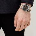 Часы Slazenger SL.09.2250.2.04 — это стильная и практичная модель, выполненная в элегантном серебристом цвете. Корпус изготовлен из металла, а на металлический браслет нанесено частичное розово-золотистое IP-покрытиеIP-покрытиеМетод ионного напыления. Демонстрирует повышенную устойчивость к истиранию, окислению и химическим веществам. Под воздействием высокого давления и температуры около 1500°C молекулы металла надёжно соединяются с частицами корпуса часов., что обеспечивает прочность и долговечность. На безельБезельВнешний ободок, закрепляющий стекло. В спортивных часах так называется поворотное кольцо с делениями на циферблате, выполняет роль таймера – замеряет отрезки времени на шкале. Неподвижный безель – элемент декора. Однонаправленно вращающийся безель на дайверских часах позволяет фиксировать моменты погружения и выныривания на поверхность. нанесено черное IP-покрытиеIP-покрытиеМетод ионного напыления. Демонстрирует повышенную устойчивость к истиранию, окислению и химическим веществам. Под воздействием высокого давления и температуры около 1500°C молекулы металла надёжно соединяются с частицами корпуса часов.. Минеральное стеклоМинеральное стеклоМинеральное стекло представляет собой искусственно выращенный минерал кварца. Такое стекло отличается особой устойчивостью к повреждениям и царапинам. Уступает по некоторым качествам сапфировому стеклу. надежно защищает синий циферблат от царапин и повреждений. Диаметр корпуса составляет 44 мм, а толщина — 11 мм, благодаря чему часы смотрятся солидно и современно. Модель оснащена кварцевым механизмом, отличающимся точностью и надежностью. На циферблате представлены дополнительные малые циферблаты для отображения второго часового поясаВторой часовой поясФункция, позволяющая отображать время двух часовых поясов одновременно., дня недели и времени в 24-часовом формате, а также имеется отдельное окошко даты. Для удобства использования в темное время суток предусмотрено люминесцентное покрытиеЛюминесцентное покрытиеПозволяет считывать показания времени в темноте. Производители наносят на стрелки, часовые индексы, безель или поверхность циферблата светонакопительный состав, дающий холодное свечение. стрелок и меток. Удобный металлический браслет шириной 22 мм снабжен раскладной застёжкойРаскладная застёжкаТакой тип застёжки используется только на браслетах из металла. Она никогда не раскрывается полностью, происходит разделение на 2 и более частей. Раскладывающая застёжка снизит вероятность потери часов к минимуму., обеспечивающей надежную фиксацию на запястье. Заводная головка оснащена защитой. Водозащита уровня WR 50 позволяет не снимать часы при мытье рук или попадании под дождь. Вес модели составляет 152 грамм.