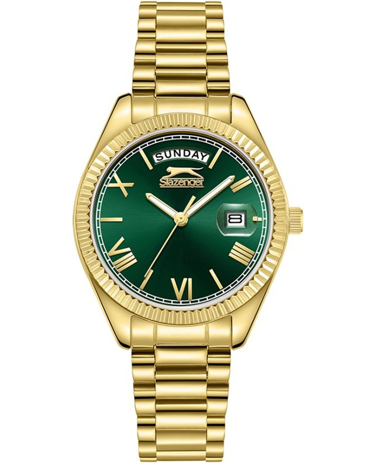 Женские элегантные наручные часы Slazenger SL.09.2338.4.05 сочетают в себе современный стиль и функциональность. Стильный корпус выполнен из суперметалла с IP-покрытиемIP-покрытиеМетод ионного напыления. Демонстрирует повышенную устойчивость к истиранию, окислению и химическим веществам. Под воздействием высокого давления и температуры около 1500°C молекулы металла надёжно соединяются с частицами корпуса часов., придающий модели дополнительную прочность и элегантный внешний вид. Изысканный циферблат защищён минеральным стекломМинеральное стеклоМинеральное стекло представляет собой искусственно выращенный минерал кварца. Такое стекло отличается особой устойчивостью к повреждениям и царапинам. Уступает по некоторым качествам сапфировому стеклу., устойчивым к царапинам и повреждениям. Водонепроницаемость 3 АТМ позволяет использовать часы в повседневных условиях — при мытье рук или под лёгким дождём. Браслет из суперметалла с IP-покрытиемIP-покрытиеМетод ионного напыления. Демонстрирует повышенную устойчивость к истиранию, окислению и химическим веществам. Под воздействием высокого давления и температуры около 1500°C молекулы металла надёжно соединяются с частицами корпуса часов. и с раскладной застёжкойРаскладная застёжкаТакой тип застёжки используется только на браслетах из металла. Она никогда не раскрывается полностью, происходит разделение на 2 и более частей. Раскладывающая застёжка снизит вероятность потери часов к минимуму., обеспечивающий надёжную фиксацию и комфорт при ношении. Окошко даты находится в положении 3 часа. Cтрелки покрыты люминесцентным покрытиемЛюминесцентное покрытиеПозволяет считывать показания времени в темноте. Производители наносят на стрелки, часовые индексы, безель или поверхность циферблата светонакопительный состав, дающий холодное свечение. для читаемости в условиях недостаточного освещения. Эта модель идеально подходит для женщин, ценящих стиль, функциональность и надёжность в одном аксессуаре.