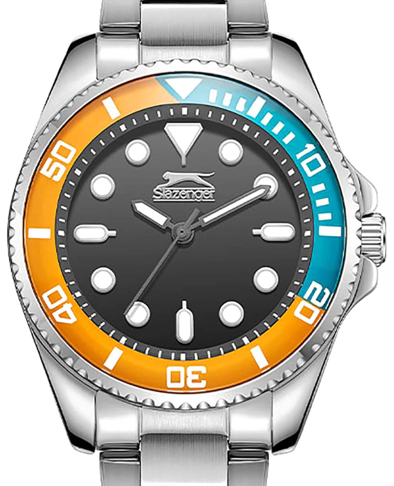 Женские кварцевые часы Slazenger SL.09.2353.3.06 – это сочетание элегантности, современного стиля и надёжности. Изящный корпус из суперметалла серебристого цвета, диаметром 32 мм и толщиной 10 мм, подчёркивает утончённость модели и делает их идеальным аксессуаром для любой ситуации – будь то деловая встреча, романтический вечер или повседневные выходы. Циферблат надёжно защищён минеральным стекломМинеральное стеклоМинеральное стекло представляет собой искусственно выращенный минерал кварца. Такое стекло отличается особой устойчивостью к повреждениям и царапинам. Уступает по некоторым качествам сапфировому стеклу., которое устойчиво к механическим повреждениям и сохраняет кристальную прозрачность. Браслет из суперметалла удобно облегает запястье и фиксируется с помощью раскладной застёжкиРаскладная застёжкаТакой тип застёжки используется только на браслетах из металла. Она никогда не раскрывается полностью, происходит разделение на 2 и более частей. Раскладывающая застёжка снизит вероятность потери часов к минимуму., обеспечивая надёжность и комфорт в повседневном ношении. Утончённый стиль, внимание к деталям и практичность делают эту модель идеальным выбором для современных женщин, ценящих эстетику и функциональность. Поворотный безельБезельВнешний ободок, закрепляющий стекло. В спортивных часах так называется поворотное кольцо с делениями на циферблате, выполняет роль таймера – замеряет отрезки времени на шкале. Неподвижный безель – элемент декора. Однонаправленно вращающийся безель на дайверских часах позволяет фиксировать моменты погружения и выныривания на поверхность. с IP-покрытиемIP-покрытиеМетод ионного напыления. Демонстрирует повышенную устойчивость к истиранию, окислению и химическим веществам. Под воздействием высокого давления и температуры около 1500°C молекулы металла надёжно соединяются с частицами корпуса часов.. Стрелки и метки покрыты люминесцентным покрытиемЛюминесцентное покрытиеПозволяет считывать показания времени в темноте. Производители наносят на стрелки, часовые индексы, безель или поверхность циферблата светонакопительный состав, дающий холодное свечение., обеспечивающим отличную читаемость в темноте. Водозащита до 30 метров позволит защитить корпус от случайных брызг или капель дождя.