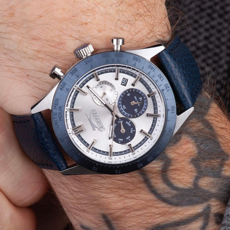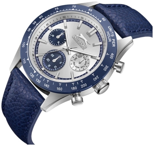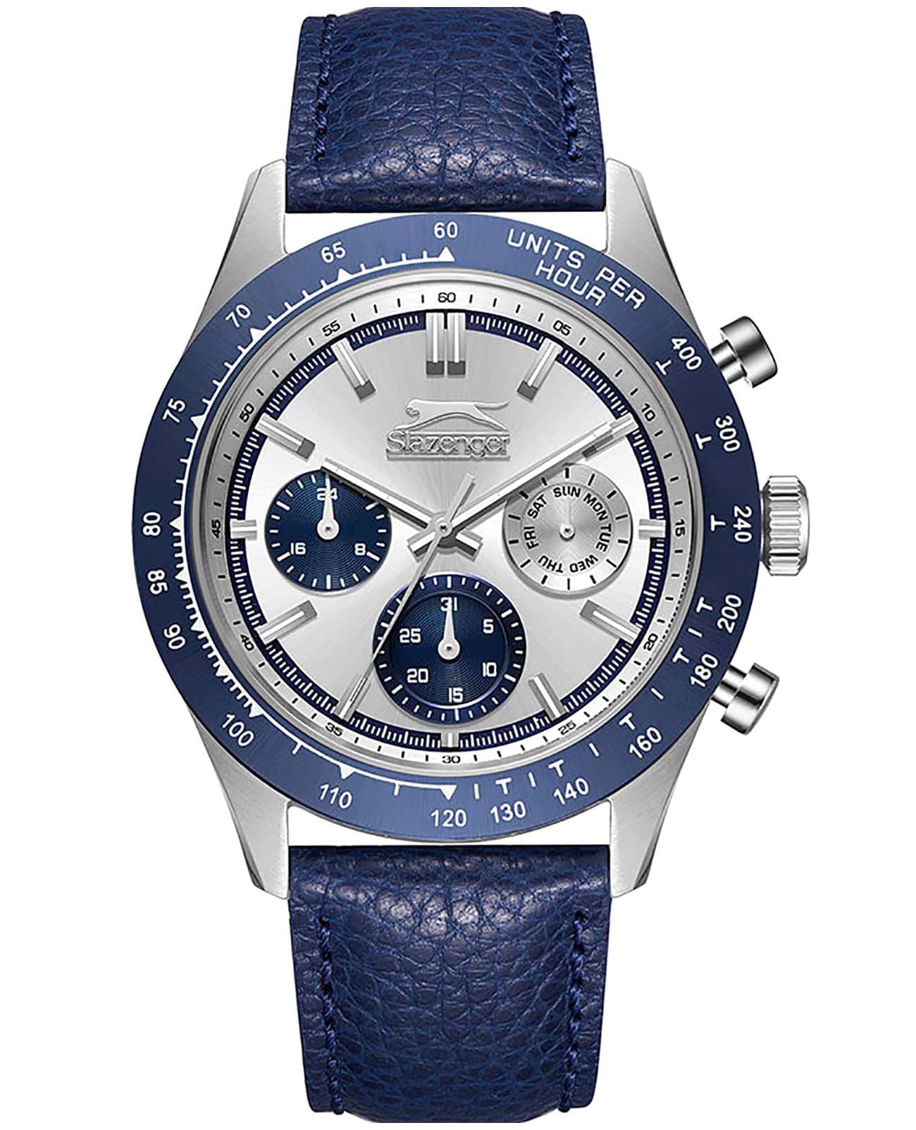 Мужские кварцевые часы Slazenger SL.09.2359.2.05 – идеальное сочетание классического дизайна и современных технологий, созданное для уверенных в себе мужчин. Корпус выполнен из суперметалла серебристого цвета, диаметром 43 мм и толщиной 11 мм, подчёркивает надежность модели и делает их идеальным аксессуаром для любой ситуации – будь то деловая встреча или повседневные выходы. Циферблат надёжно защищён минеральным стекломМинеральное стеклоМинеральное стекло представляет собой искусственно выращенный минерал кварца. Такое стекло отличается особой устойчивостью к повреждениям и царапинам. Уступает по некоторым качествам сапфировому стеклу., которое устойчиво к механическим повреждениям и сохраняет кристальную прозрачность. Неподвижный безельБезельВнешний ободок, закрепляющий стекло. В спортивных часах так называется поворотное кольцо с делениями на циферблате, выполняет роль таймера – замеряет отрезки времени на шкале. Неподвижный безель – элемент декора. Однонаправленно вращающийся безель на дайверских часах позволяет фиксировать моменты погружения и выныривания на поверхность. с IP-покрытиемIP-покрытиеМетод ионного напыления. Демонстрирует повышенную устойчивость к истиранию, окислению и химическим веществам. Под воздействием высокого давления и температуры около 1500°C молекулы металла надёжно соединяются с частицами корпуса часов. синего цвета. Кожаный ремешок на стандартной застёжке удобно облегает запястье, обеспечивая надёжность и комфорт в повседневном ношении. Стрелки покрыты люминесцентным покрытиемЛюминесцентное покрытиеПозволяет считывать показания времени в темноте. Производители наносят на стрелки, часовые индексы, безель или поверхность циферблата светонакопительный состав, дающий холодное свечение., обеспечивающим отличную читаемость в темноте. Эти часы станут не просто аксессуаром, а надежным спутником в любой ситуации, подчеркивая ваш безупречный вкус и деловой стиль. Вынесенный циферблат с 24-х часовым указателем времени и функция тахиметраТахиметрРазмеченная шкала, располагается на ободке или безеле часов. Тахиметр позволяет рассчитать скорость на определённом участке пути, расстояние измеряется в километрах или милях.. Водозащита 50 метров позволит защитить корпус от случайных брызг или капель дождя.