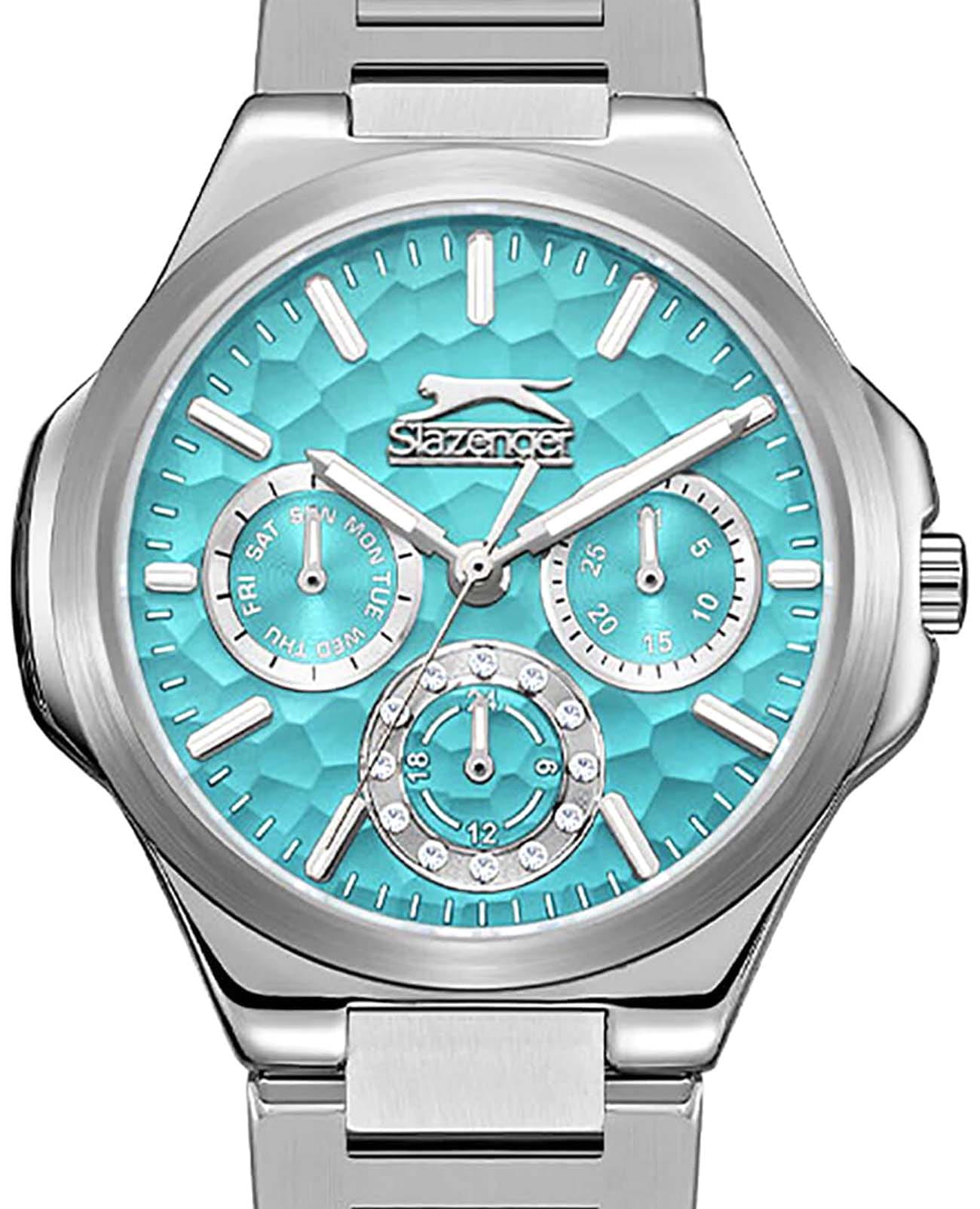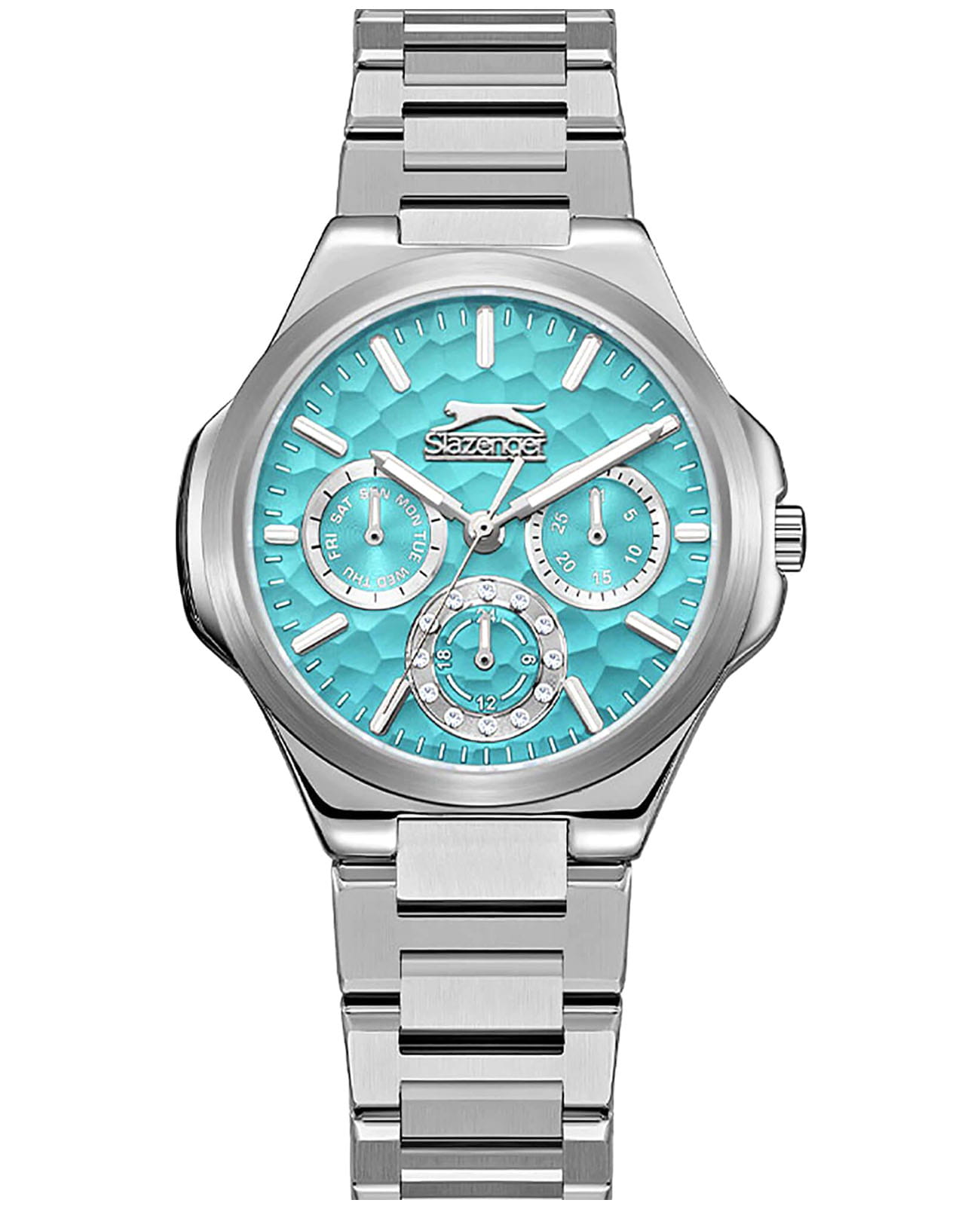 Женские кварцевые часы Slazenger SL.09.2365.4.05 – это сочетание элегантности, современного стиля и надёжности. Изящный корпус из суперметалла серебристого цвета, диаметром 33 мм и толщиной 10 мм, подчёркивает утончённость модели и делает их идеальным аксессуаром для любой ситуации – будь то деловая встреча, романтический вечер или повседневные выходы. Циферблат надёжно защищён минеральным стекломМинеральное стеклоМинеральное стекло представляет собой искусственно выращенный минерал кварца. Такое стекло отличается особой устойчивостью к повреждениям и царапинам. Уступает по некоторым качествам сапфировому стеклу., которое устойчиво к механическим повреждениям и сохраняет кристальную прозрачность. Браслет из суперметалла удобно облегает запястье и фиксируется с помощью раскладной застёжкиРаскладная застёжкаТакой тип застёжки используется только на браслетах из металла. Она никогда не раскрывается полностью, происходит разделение на 2 и более частей. Раскладывающая застёжка снизит вероятность потери часов к минимуму., обеспечивая надёжность и комфорт в повседневном ношении. Утончённый стиль, внимание к деталям и практичность делают эту модель идеальным выбором для современных женщин, ценящих эстетику и функциональность. Стрелки и метки покрыты люминесцентным покрытиемЛюминесцентное покрытиеПозволяет считывать показания времени в темноте. Производители наносят на стрелки, часовые индексы, безель или поверхность циферблата светонакопительный состав, дающий холодное свечение., обеспечивающим отличную читаемость в темноте. Вынесенный циферблат с 24-х часовым указателем времени украшен фианитами. Водозащита до 30 метров позволит защитить корпус от случайных брызг или капель дождя.