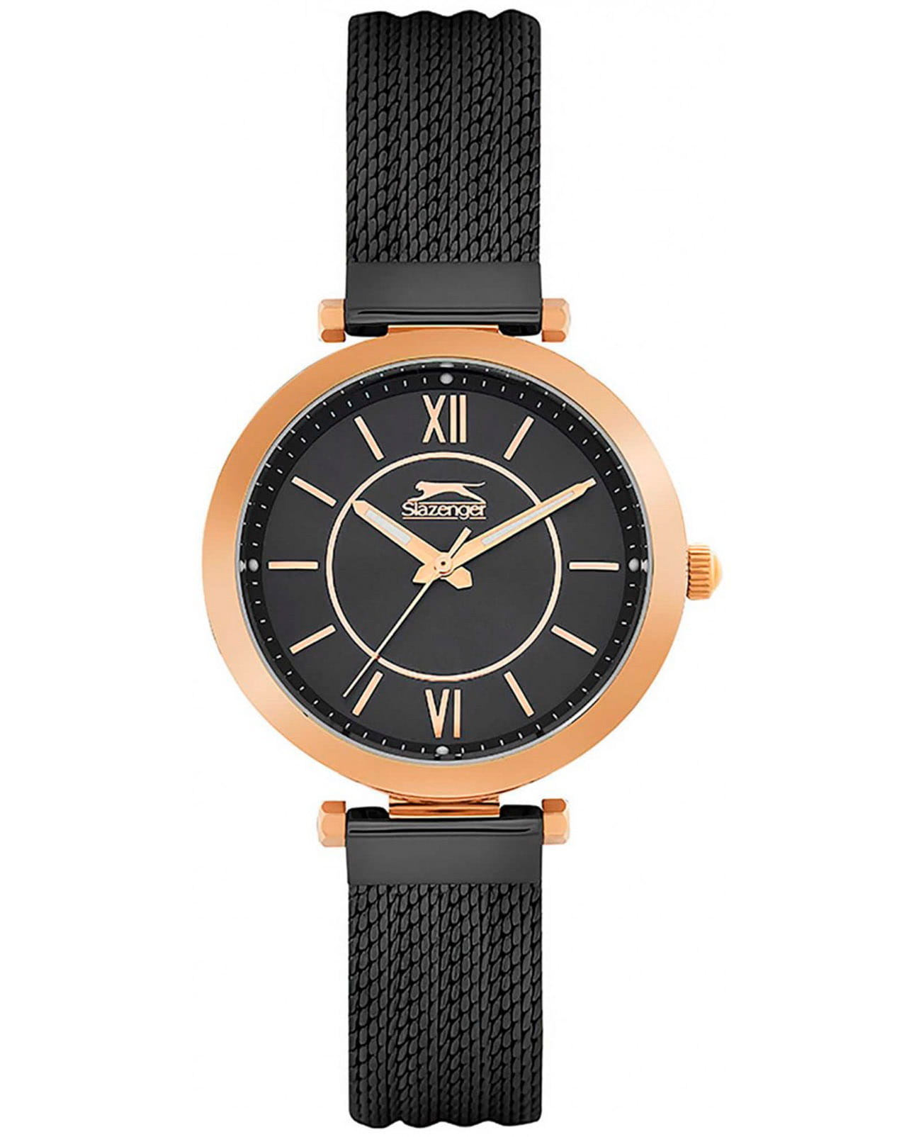Женские кварцевые часы Slazenger — это элегантный аксессуар, который станет отличным дополнением к стилю. Корпус диаметром 34 мм и толщиной 8 мм выполнен из суперметалла с IP-покрытиемIP-покрытиеМетод ионного напыления. Демонстрирует повышенную устойчивость к истиранию, окислению и химическим веществам. Под воздействием высокого давления и температуры около 1500°C молекулы металла надёжно соединяются с частицами корпуса часов.. Циферблат чёрного цвета оформлен индексами и стрелками. Циферблат защищён минеральным стекломМинеральное стеклоМинеральное стекло представляет собой искусственно выращенный минерал кварца. Такое стекло отличается особой устойчивостью к повреждениям и царапинам. Уступает по некоторым качествам сапфировому стеклу.. Механизм — кварцевый калибр Miyota 2035. Часы оснащены браслетом из суперметалла миланского плетения с раскладной застёжкойРаскладная застёжкаТакой тип застёжки используется только на браслетах из металла. Она никогда не раскрывается полностью, происходит разделение на 2 и более частей. Раскладывающая застёжка снизит вероятность потери часов к минимуму.. Водонепроницаемость 30 м позволяет использовать часы в повседневных условиях. Идеальный выбор для тех, кто ценит стиль и качество.