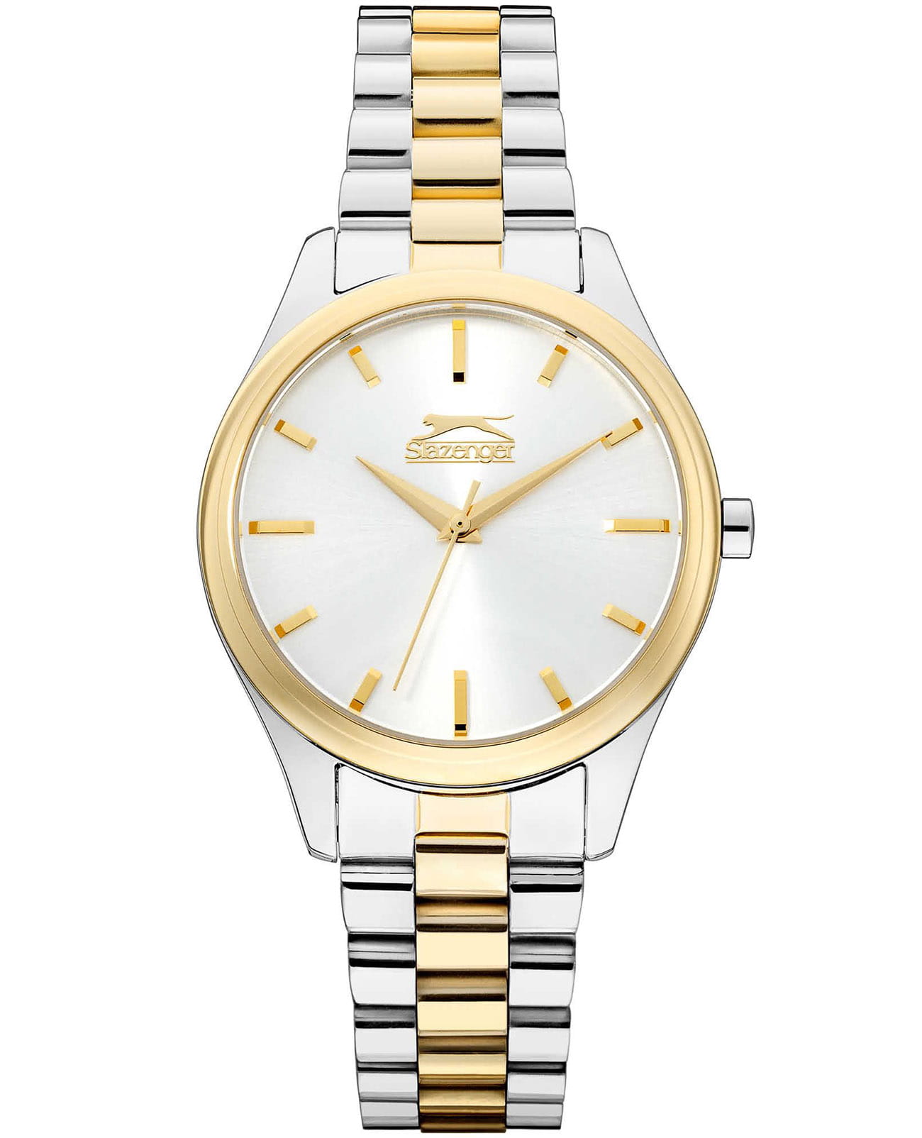Женские кварцевые часы Slazenger — это элегантный аксессуар. Корпус диаметром 34 мм и толщиной 9 мм выполнен из суперметалла. БезельБезельВнешний ободок, закрепляющий стекло. В спортивных часах так называется поворотное кольцо с делениями на циферблате, выполняет роль таймера – замеряет отрезки времени на шкале. Неподвижный безель – элемент декора. Однонаправленно вращающийся безель на дайверских часах позволяет фиксировать моменты погружения и выныривания на поверхность. с IP-покрытиемIP-покрытиеМетод ионного напыления. Демонстрирует повышенную устойчивость к истиранию, окислению и химическим веществам. Под воздействием высокого давления и температуры около 1500°C молекулы металла надёжно соединяются с частицами корпуса часов.. Циферблат серебристого цвета оформлен индексами и стрелками. Циферблат защищён минеральным стекломМинеральное стеклоМинеральное стекло представляет собой искусственно выращенный минерал кварца. Такое стекло отличается особой устойчивостью к повреждениям и царапинам. Уступает по некоторым качествам сапфировому стеклу.. Механизм — кварцевый калибр Miyota 2035. Часы оснащены браслетом из суперметалла с частичным IP-покрытиемIP-покрытиеМетод ионного напыления. Демонстрирует повышенную устойчивость к истиранию, окислению и химическим веществам. Под воздействием высокого давления и температуры около 1500°C молекулы металла надёжно соединяются с частицами корпуса часов. на раскладной застёжкеРаскладная застёжкаТакой тип застёжки используется только на браслетах из металла. Она никогда не раскрывается полностью, происходит разделение на 2 и более частей. Раскладывающая застёжка снизит вероятность потери часов к минимуму.. Водонепроницаемость 30 м позволяет использовать часы в повседневных условиях. Идеальный выбор для тех, кто ценит стиль и качество.