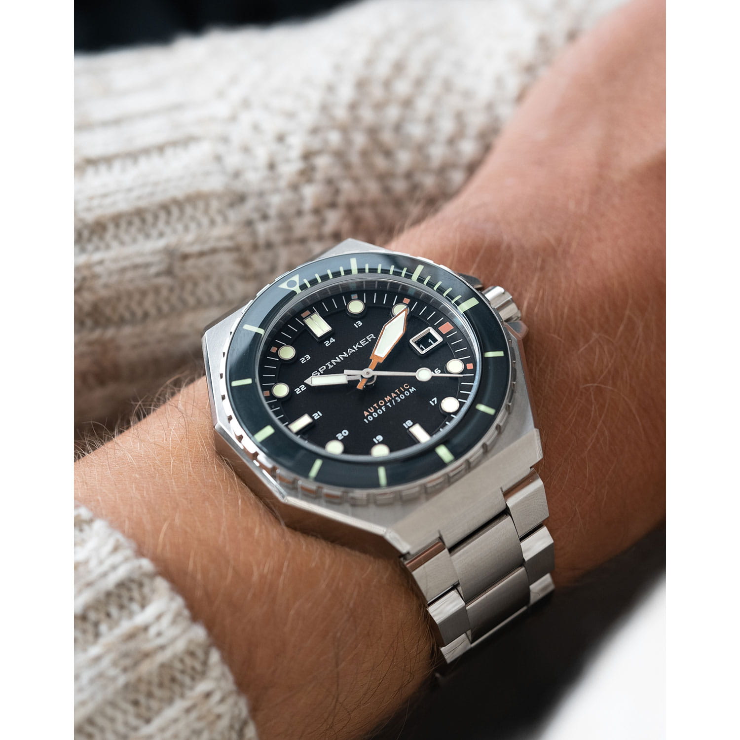 Мужские итальянские часы Spinnaker Dumas SP-5081-GG, механический механизм (автоматический калибр) с высокой точностью. Циферблат с люминесцентным покрытиемЛюминесцентное покрытиеПозволяет считывать показания времени в темноте. Производители наносят на стрелки, часовые индексы, безель или поверхность циферблата светонакопительный состав, дающий холодное свечение. стрелок и меток, дополнен сапфировым стекломСапфировое стеклоПрочный и надёжный материал из кристалла сапфира синтетического происхождения, характеризующийся особой твёрдостью и устойчивостью к царапинам и повреждениям., устойчивым к появлению царапин и обладающее высокой прозрачностью. Класс водозащиты: 300 метров, позволит плавать, нырять и заниматься другими водными видами спорта. Корпус часов изготовлен из стали.