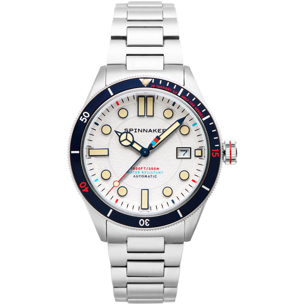 Мужские итальянские часы с автоподзаводом Spinnaker Cahill SP-5096-33, механический механизм (автоматический калибр) с высокой точностью. Циферблат с люминесцентным покрытиемЛюминесцентное покрытиеПозволяет считывать показания времени в темноте. Производители наносят на стрелки, часовые индексы, безель или поверхность циферблата светонакопительный состав, дающий холодное свечение. стрелок и меток дополнен сапфировым стекломСапфировое стеклоПрочный и надёжный материал из кристалла сапфира синтетического происхождения, характеризующийся особой твёрдостью и устойчивостью к царапинам и повреждениям., устойчивым к появлению царапин и обладающее высокой прозрачностью. Класс водозащиты: 300 метров, позволит плавать, нырять и заниматься другими водными видами спорта. Корпус часов изготовлен из стали. Стальной браслет на раскладной застёжкеРаскладная застёжкаТакой тип застёжки используется только на браслетах из металла. Она никогда не раскрывается полностью, происходит разделение на 2 и более частей. Раскладывающая застёжка снизит вероятность потери часов к минимуму.. БезельБезельВнешний ободок, закрепляющий стекло. В спортивных часах так называется поворотное кольцо с делениями на циферблате, выполняет роль таймера – замеряет отрезки времени на шкале. Неподвижный безель – элемент декора. Однонаправленно вращающийся безель на дайверских часах позволяет фиксировать моменты погружения и выныривания на поверхность. с PVD-покрытиемPVDУльтратонкое покрытие наносится в технике вакуумного напыления, сочетает в себе нитрид титана особой прочности со слоем золота или оксида хрома. Несёт в себе декоративную или защитную функцию.. Окошко даты находятся в положении 3 часа. Сменный ремешок в комплекте.