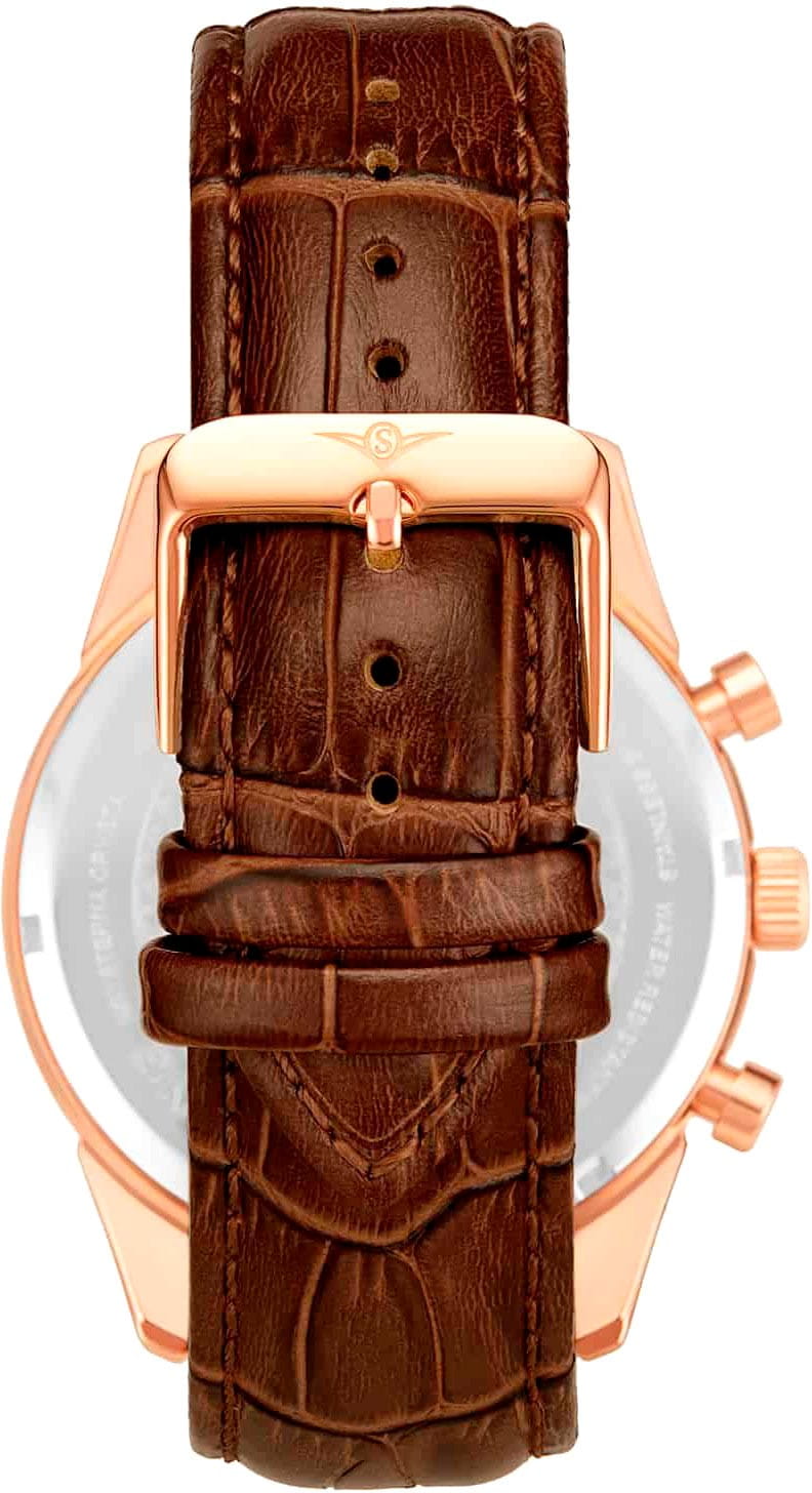 Stuhrling 3975L.6 — стильные мужские часы с выразительным пилотским дизайном и мощным функционалом. Классический циферблат дополнен контрастными счётчиками хронографаХронографФункция позволяет измерять отрезки времени с особой точностью: часы, минуты, секунды. Верным признаком хронографа является наличие на циферблате 3 дополнительных окошек-счётчиков., тахиметрической шкалой по ободу и аккуратным окошком даты, подчёркивающими технический характер модели. Корпус из нержавеющей стали с PVD-покрытиемPVDУльтратонкое покрытие наносится в технике вакуумного напыления, сочетает в себе нитрид титана особой прочности со слоем золота или оксида хрома. Несёт в себе декоративную или защитную функцию. придаёт часам надёжность и современный блеск, а стекло KrysternaKrysternaKrysterna — инновационное стекло для наручных часов. Благодаря уникальной структуре, Krysterna объединяет ключевые преимущества двух материалов: твердость сапфира, защищающую от царапин, и гибкость минерального стекла, обеспечивающую устойчивость к деформациям. Такая комбинация делает его идеальным решением для часов, подверженных экстремальным нагрузкам, сохраняя при этом оптическую прозрачность. защищает поверхность от царапин и сохраняет кристальную прозрачность. Кожаный ремень с классической текстурой аллигатора и стандартной застежкой, обеспечивает комфорт и элегантную посадку на запястье. Stuhrling — гармония силы, точности и изысканного стиля для мужчин, ценящих уверенность и безупречный вкус.