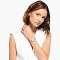 Сверкающий белый циферблат с изящными золотистыми метками и стрелками подчёркивает элегантность дизайна. Логотип Swarovski в виде лебедя расположен на отметке «12 часов».