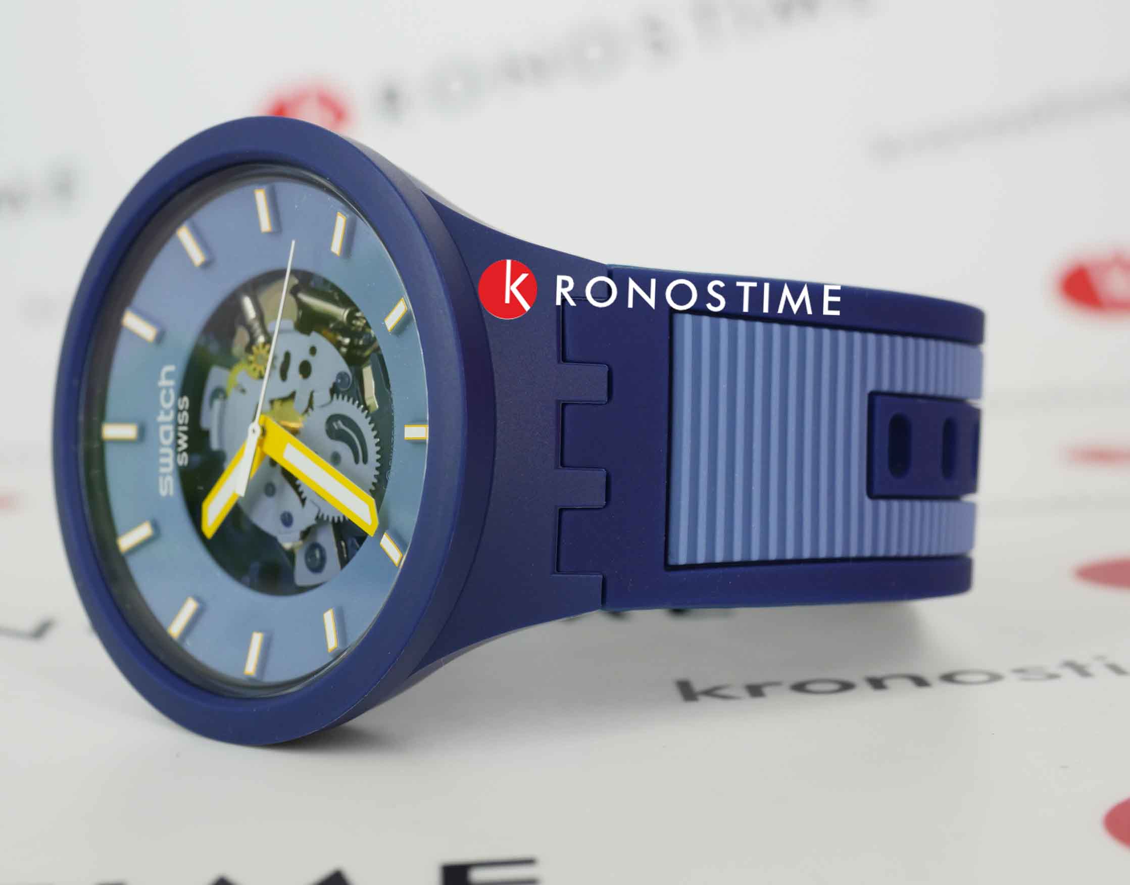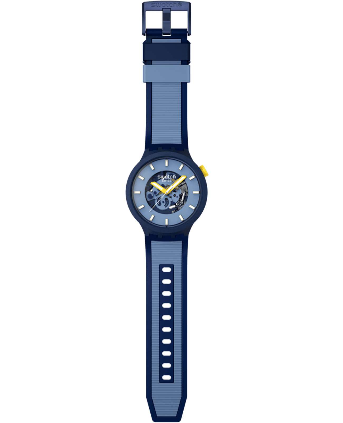 Часы Swatch SB05N117 — это стильный и современный аксессуар для тех, кто ценит лёгкость и комфорт. Часы идеально подойдут как для мужчин, так и для женщин. Эти часы большого размера отличаются светло-голубым открытым циферблатом, 3D-индексами с белым и желтым принтом, светящимися в темноте часовой и минутной стрелками благодаря люминесцентному покрытиюЛюминесцентное покрытиеПозволяет считывать показания времени в темноте. Производители наносят на стрелки, часовые индексы, безель или поверхность циферблата светонакопительный состав, дающий холодное свечение., белой секундной стрелкой и светло-голубыми элементами часового механизма, покрытого стеклом из биоматериала.  Матовый темно-синий корпус из биоматериала в тон дополнен матовым темно-синим ремешком с матовой светло-голубой структурой, матовыми темно-синими и светло-голубыми петлями и матовой темно-синей пряжкой-половинкой. Водозащита 30 метров делает часы практичными для повседневного использования. Эти часы подойдут для повседневного ношения и станут ярким акцентом в вашем наряде.