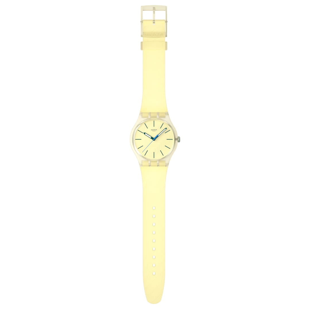 Мужские наручные часы Swatch CITRUS TILT SO29J102 — это стильный и современный аксессуар для тех, кто ценит лёгкость и комфорт. Корпус выполнен из пластика, диаметром 41 мм и толщиной 9.85 мм, что обеспечивает долговечность и утончённый внешний вид. Циферблат защищён органическим стеклом, устойчивым к повреждениям. Модель оснащена кварцевым механизмом, обеспечивающим высокую точность хода. Часовая и минутная стрелки с люминесцентным покрытиемЛюминесцентное покрытиеПозволяет считывать показания времени в темноте. Производители наносят на стрелки, часовые индексы, безель или поверхность циферблата светонакопительный состав, дающий холодное свечение.. Силиконовый текстурированный матово-желтый ремешок на стандартной застёжке гармонично дополняет корпус и обеспечивает комфортное ношение. Водозащита 30 метров позволит защитить корпус от случайных брызг или капель дождя. Эти часы подойдут для повседневного ношения и станут ярким акцентом в вашем наряде.