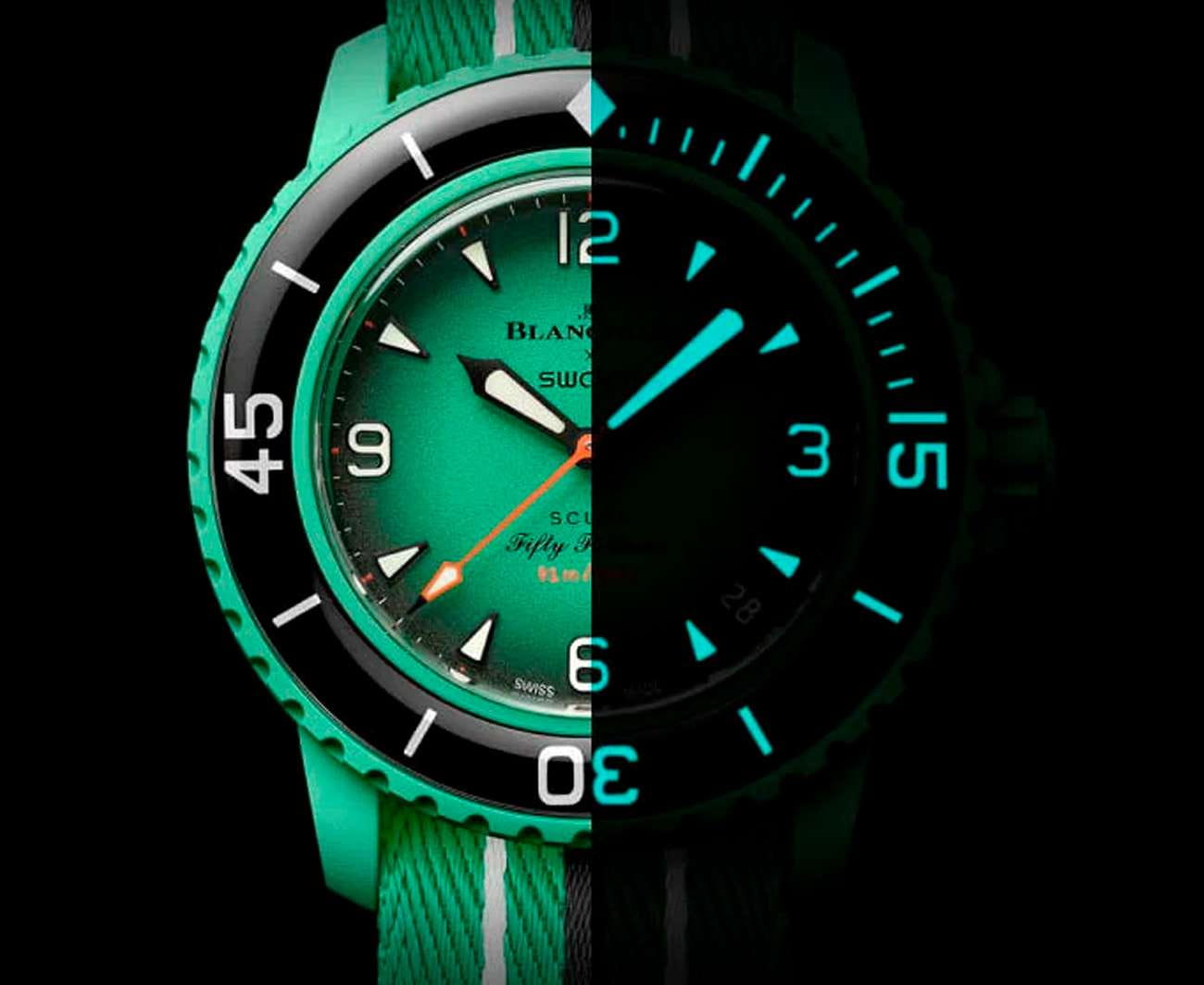Швейцарские наручные часы сочетают в себе современный дизайн и инновационные технологии. Модель обладает круглым корпусом диаметром 42,3 мм, изготовленным из биокерамикиБиокерамикаБиокерамика — это материал, который на две трети состоит из керамики, на одну треть — из биопластика. Он сочетает в себе лучшие качества обоих материалов и обладает прочностью и шелковистой на ощупь текстурой., что обеспечивает высокую прочность и устойчивость к внешним воздействиям . Толщина корпуса составляет 14,4 мм, а расстояние между ушками — 48,0 мм, что делает часы удобными для повседневного использования . Ремешок выполнен из ткани в стиле ремешка NATOРемешок NATOРемешок NATO — это прочный, универсальный и сменный часовой ремешок, изначально созданный для военных. Он изготовлен из нейлона или другого прочного материала и имеет уникальную конструкцию, которая позволяет часам оставаться на запястье даже в случае поломки одной из прикрепляющих точек. , гарантируя комфортное ношение и долговечность . Зеленый циферблат дополнен люминесцентными метками и арабскими цифрами, что обеспечивает четкость считывания времени в любых условиях . Для защиты используется органическое стекло, обеспечивающее надежную защиту от царапин и механических повреждений . Часы работают на автоматическом механизме Sistem51, что гарантирует точность хода без необходимости регулярной подзаводки . Водонепроницаемость часов достигает 100 метров, что позволяет использовать их в повседневных условиях, однако не рекомендуется погружение на большую глубину . Дополнительные элементы дизайна, такие как заводная головка и кнопки-пушеры, выполненные из биокерамикиБиокерамикаБиокерамика — это материал, который на две трети состоит из керамики, на одну треть — из биопластика. Он сочетает в себе лучшие качества обоих материалов и обладает прочностью и шелковистой на ощупь текстурой., завершают образ этих стильных и функциональных часов.