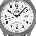 Модель SM34108.04 от Swiss Military by Chrono — это надёжные швейцарские часы в классическом армейском стиле, сочетающие функциональность и сдержанный дизайн. Корпус выполнен из нержавеющей стали с PVD-покрытиемPVDУльтратонкое покрытие наносится в технике вакуумного напыления, сочетает в себе нитрид титана особой прочности со слоем золота или оксида хрома. Несёт в себе декоративную или защитную функцию., подчёркивая прочность и элегантность конструкции. Циферблат с арабскими цифрами обеспечивает отличную читаемость, а функция отображения даты добавляет практичности. Часы оснащены кварцевым механизмом, обеспечивающим точный ход. Циферблат защищён сапфировым стекломСапфировое стеклоПрочный и надёжный материал из кристалла сапфира синтетического происхождения, характеризующийся особой твёрдостью и устойчивостью к царапинам и повреждениям., устойчивым к царапинам. Тканевый ремешок на стандартной застежке для надёжной фиксации на запястье. Модель обладает водонепроницаемостью до 100 метров, что делает её подходящей для плавания и сноркелинга.