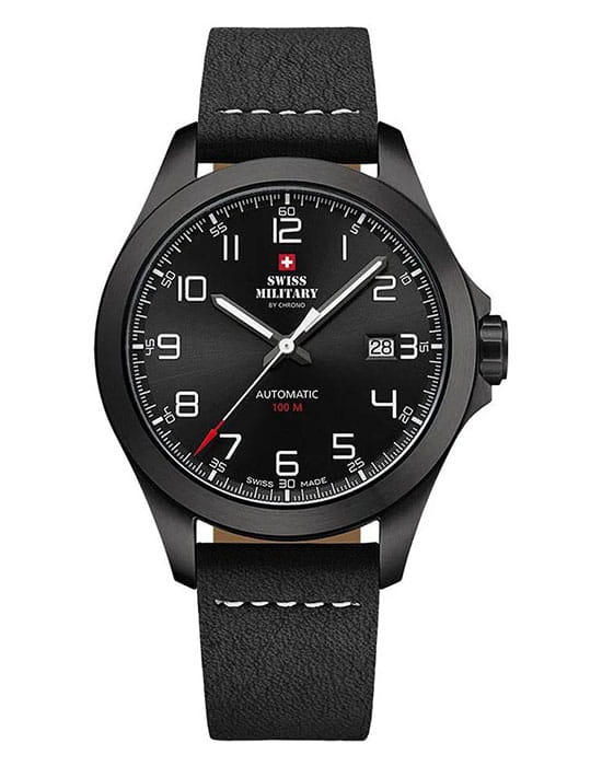 Мужские швейцарские наручные часы Swiss Military by Chrono Automatic Collection SMA34077.04, механический механизм (автоматический калибр) с высокой точностью. Сапфировое стекло устойчивое к появлению царапин, обладающее высокой прозрачностью. Класс водозащиты: 100 метров, позволит плавать, нырять и заниматься другими водными видами спорта. Корпус часов изготовлен из стали, черного цвета.