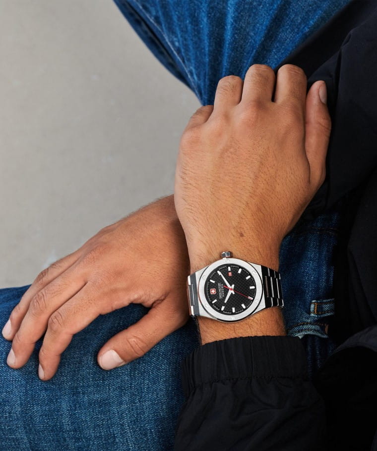 Мужские швейцарские часы с сапфировым стекломСапфировое стеклоПрочный и надёжный материал из кристалла сапфира синтетического происхождения, характеризующийся особой твёрдостью и устойчивостью к царапинам и повреждениям. Swiss Military Hanowa Sidewinder SMWGH2101604, кварцевый механизм с высокой точностью. Сапфировое стеклоСапфировое стеклоПрочный и надёжный материал из кристалла сапфира синтетического происхождения, характеризующийся особой твёрдостью и устойчивостью к царапинам и повреждениям. устойчивое к появлению царапин, обладающее высокой прозрачностью. Класс водозащиты: 100 метров, позволит плавать, нырять и заниматься другими водными видами спорта. Корпус часов изготовлен из стали. Стальной браслет на раскладной застёжкеРаскладная застёжкаТакой тип застёжки используется только на браслетах из металла. Она никогда не раскрывается полностью, происходит разделение на 2 и более частей. Раскладывающая застёжка снизит вероятность потери часов к минимуму..