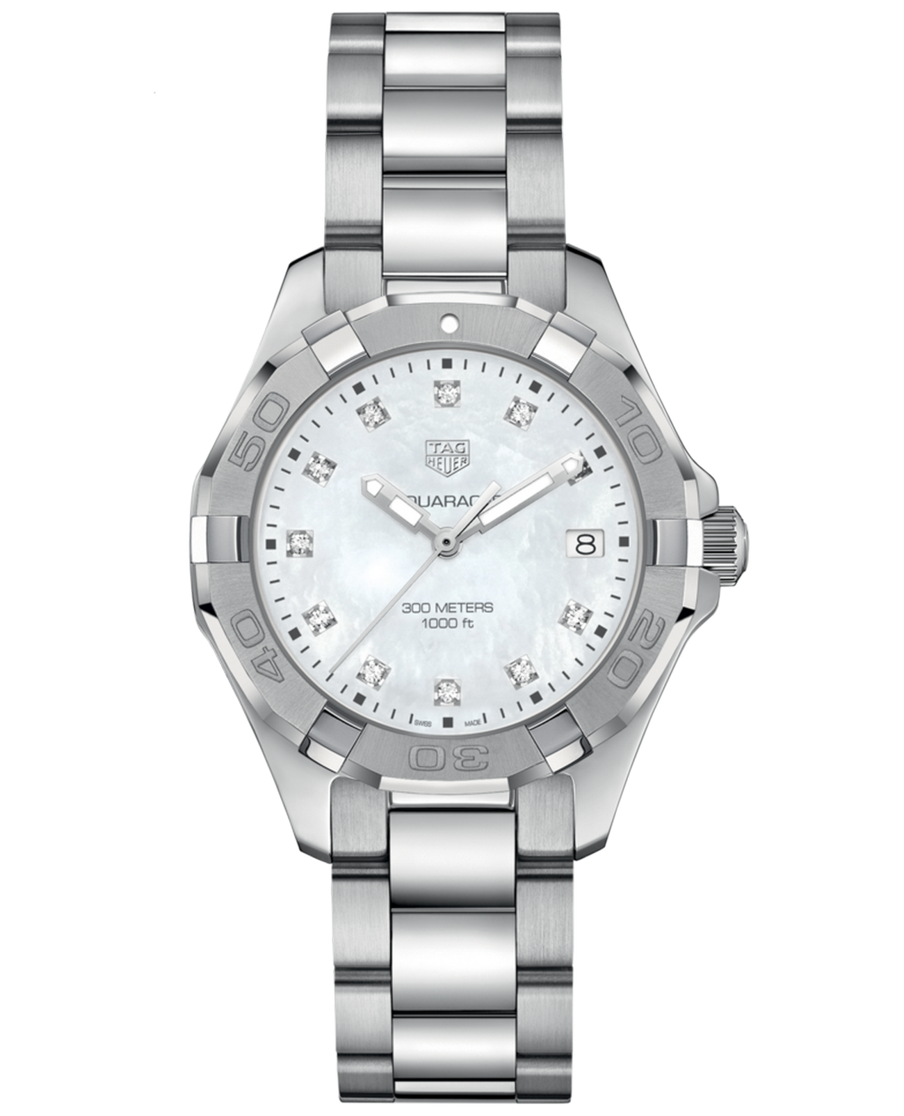 Изысканные кварцевые женские часы TAG Heuer Aquaracer Professional 300 WBD131B.BA0748 с большим, выразительным корпусом диаметром 35 мм из нержавеющей стали. Кварцевый механизм с высокой точностью. Сапфировое стекло устойчивое к появлению царапин, обладающее высокой прозрачностью. Класс водозащиты: 300 метров, позволит плавать, нырять и заниматься другими водными видами спорта. Корпус часов изготовлен из стали, серебристого цвета.
