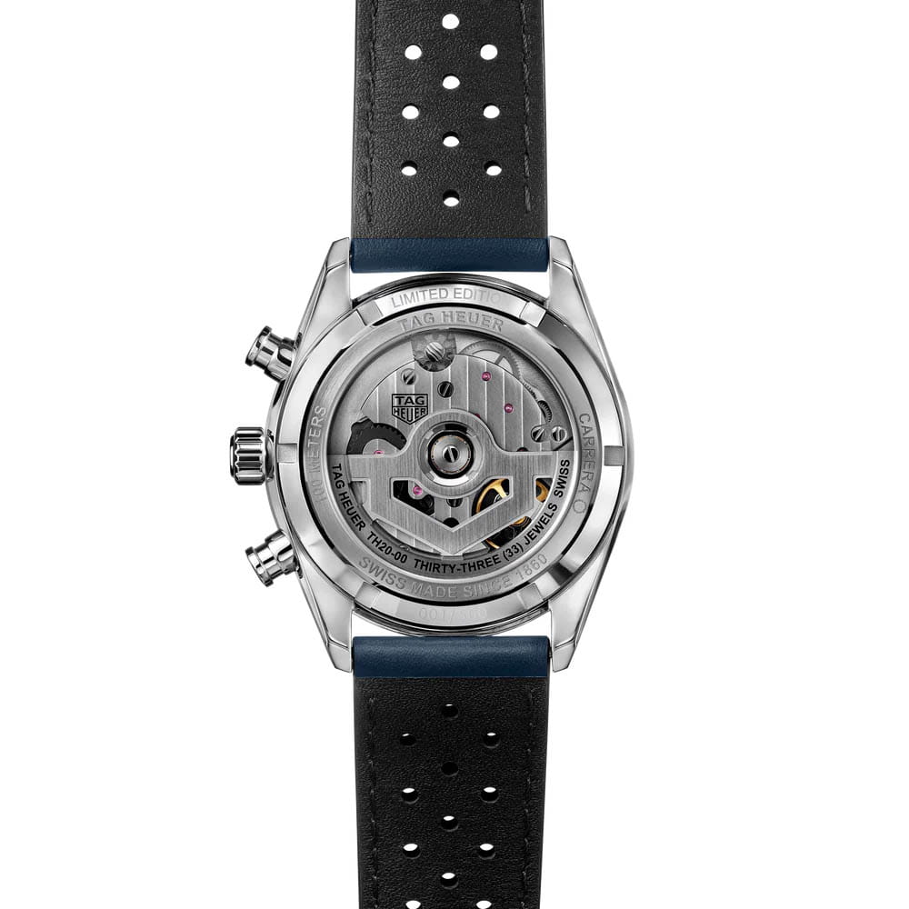 В великолепном исполнении эти часы-хронографХронографФункция позволяет измерять отрезки времени с особой точностью: часы, минуты, секунды. Верным признаком хронографа является наличие на циферблате 3 дополнительных окошек-счётчиков. TAG Heuer Carrera Chronograph CBN201N.FC6620 вдохновлены легендарной моделью Heuer 1950-х и 1960-х годов. Ограниченная серия с 500 экземплярами, каждый эксклюзивный экземпляр пронумерован. Циферблат синего цвета, дополненный бирюзовыми акцентами и яркими желтыми бликами, создает изысканный и уникальный вид. Часы оснащены мануфактурным механизмом TAG Heuer TH20-00. Механический механизм (автоматический калибр) с высокой точностью. Сапфировое стеклоСапфировое стеклоПрочный и надёжный материал из кристалла сапфира синтетического происхождения, характеризующийся особой твёрдостью и устойчивостью к царапинам и повреждениям. устойчивое к появлению царапин, обладающее высокой прозрачностью. Стрелки с люминесцентным покрытиемЛюминесцентное покрытиеПозволяет считывать показания времени в темноте. Производители наносят на стрелки, часовые индексы, безель или поверхность циферблата светонакопительный состав, дающий холодное свечение.. Класс водозащиты: 100 метров, позволит плавать, нырять и заниматься другими водными видами спорта. Корпус часов изготовлен из нержавеющей стали. Кожаный ремешок с раскладной застёжкойРаскладная застёжкаТакой тип застёжки используется только на браслетах из металла. Она никогда не раскрывается полностью, происходит разделение на 2 и более частей. Раскладывающая застёжка снизит вероятность потери часов к минимуму..