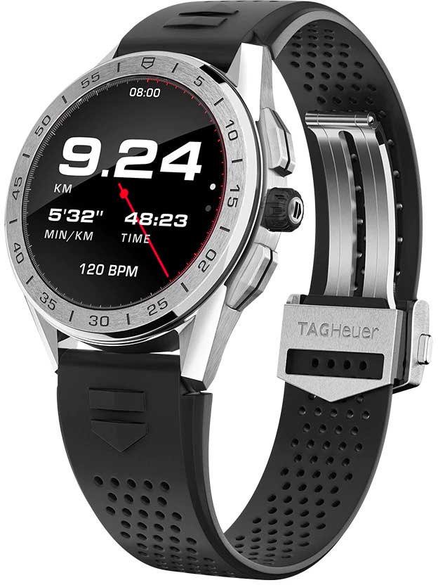 Новое поколение смарт-часов от TAG Heuer - это образец мастерства бренда, воплощающего в себе передовые технологии двадцать первого века. Эти часы – идеальный выбор для ценителей часового искусства и приверженцев активного образа жизни. Connected. Унисекс. Смарт-часы работают на базе четырехъядерного процессора Qualcomm® Snapdragon™ Wear 3100 и оснащены операционной системой Wear OS от Google. Совместимы с ОС Android 6.0+ (исключая версию Go) и iOS 10.0+. Встроенная система бесконтактной оплаты NFC (Google Pay). Микрофон. Голосовой помощник Google Assistant и Google Translate. Возможность установка приложений из Google Play. Возможность управления функциями телефона как через сенсорный дисплей, так и через функциональные кнопки и заводную головку. Подключение к интернету через Wi-Fi или с помощью интернета мобильного телефона. Синхронизация со смартфоном через Bluetooth. Поддержка спортивных онлайн-сообществ. Совместимость с приложением TAG Heuer Sports. Настраиваемые экраны: скелетонизированный циферблат мануфактурного механизма Heuer 02, цифровой механизм Carrera Heuer 01, анимация Orbital на основе уникальной нейросетевой модели, а также дисплей, вдохновленный фирменной спиралью баланса из углеродного композита на основе гексагональных нанотрубок. Настраиваемая подсветка (яркость/режим). Цветной сенсорный дисплей на органических светодиодах (OLED) размером 1,39'' и разрешением 454х454 пикселей (326 ppi). Второй часовой пояс. SPLIT-хронограф. Сервисы навигации GPS, GLONASS, BeiDou и QZSS. Пульсометр, компас, акселерометр, гироскоп, секундомер, таймер и будильник. Мониторинг количества израсходованных калорий. Вибро-оповещение. Перезаряжаемый аккумулятор 430мАч, которого хватает на сутки, включая часовую тренировку. Время полной подзарядки 1,5 часа. Керамический безель. Круглый корпус. Задняя крышка корпуса с винтовым креплением. Каучуковый ремешок с системой быстрой замены. В комплект входят магнитное зарядное устройство аккумулятора и специальный дорожный чехол.