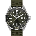 TAG Heuer Aquaracer WAY101E.FC8222 – элегантные мужские часы, сочетающие стиль и функциональность. Корпус диаметром 43 мм выполнен из нержавеющей стали с безелемБезельВнешний ободок, закрепляющий стекло. В спортивных часах так называется поворотное кольцо с делениями на циферблате, выполняет роль таймера – замеряет отрезки времени на шкале. Неподвижный безель – элемент декора. Однонаправленно вращающийся безель на дайверских часах позволяет фиксировать моменты погружения и выныривания на поверхность. из алюминия и стали с PVD-покрытиемPVDУльтратонкое покрытие наносится в технике вакуумного напыления, сочетает в себе нитрид титана особой прочности со слоем золота или оксида хрома. Несёт в себе декоративную или защитную функцию., устойчивым к царапинам. Тёмно-зелёный циферблат с солнечным узором оснащён накладными часовыми метками и стрелками с люминесцентным покрытиемЛюминесцентное покрытиеПозволяет считывать показания времени в темноте. Производители наносят на стрелки, часовые индексы, безель или поверхность циферблата светонакопительный состав, дающий холодное свечение., обеспечивающим отличную читаемость в любых условиях освещения. Часы оснащены точным кварцевым механизмом, гарантирующим надёжное отображение времени. Функциональность включает индикацию часов, минут, секунд и даты, расположенной на отметке «3 часа». Сапфировое стеклоСапфировое стеклоПрочный и надёжный материал из кристалла сапфира синтетического происхождения, характеризующийся особой твёрдостью и устойчивостью к царапинам и повреждениям. с антибликовым покрытиемАнтибликовое покрытиеСлой оксида металла в 0,13-0,3 микрон, благодаря которому стекло часов не бликует и не отражает свет. Антибликовое покрытие уменьшает отражение света в 10 раз, обеспечивая отличную читаемость показателей циферблата. обеспечивает защиту от царапин и превосходную читаемость. Тёмно-зелёный нейлоновый ремешок оснащён классической застёжкой-пряжкой из нержавеющей стали. Водозащита до 300 метров (30 бар) делает модель подходящей для дайвинга и других водных видов спорта.