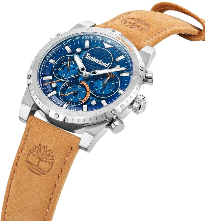 Американские мужские часы Timberland TDWGF0009404 с тахиметромТахиметрРазмеченная шкала, располагается на ободке или безеле часов. Тахиметр позволяет рассчитать скорость на определённом участке пути, расстояние измеряется в километрах или милях. имеют кварцевый механизм с высокой точностью. Класс водозащиты: 50 метров, позволит защитить корпус от случайных брызг или капель дождя. Корпус часов изготовлен из стали. Прочное минеральное стеклоМинеральное стеклоМинеральное стекло представляет собой искусственно выращенный минерал кварца. Такое стекло отличается особой устойчивостью к повреждениям и царапинам. Уступает по некоторым качествам сапфировому стеклу.. Стрелки c люминесцентным покрытиемЛюминесцентное покрытиеПозволяет считывать показания времени в темноте. Производители наносят на стрелки, часовые индексы, безель или поверхность циферблата светонакопительный состав, дающий холодное свечение.. Кожаный ремешок с классической застежкой и системой быстрой замены.