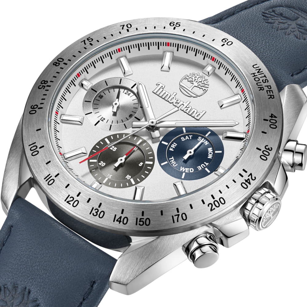 Американские мужские часы-хронографХронографФункция позволяет измерять отрезки времени с особой точностью: часы, минуты, секунды. Верным признаком хронографа является наличие на циферблате 3 дополнительных окошек-счётчиков. Timberland Carrigan TDWGF0009802 имеют кварцевый механизм с высокой точностью. Класс водозащиты: 50 метров, позволит защитить корпус от случайных брызг или капель дождя. 12-ти и 24-х часовой формат времени. Прочное минеральное стеклоМинеральное стеклоМинеральное стекло представляет собой искусственно выращенный минерал кварца. Такое стекло отличается особой устойчивостью к повреждениям и царапинам. Уступает по некоторым качествам сапфировому стеклу.. Стрелки и метки циферблата с люминесцентным покрытиемЛюминесцентное покрытиеПозволяет считывать показания времени в темноте. Производители наносят на стрелки, часовые индексы, безель или поверхность циферблата светонакопительный состав, дающий холодное свечение.. Корпус часов изготовлен из стали. Кожаный ремешок с классической застежкой. ТахиметрТахиметрРазмеченная шкала, располагается на ободке или безеле часов. Тахиметр позволяет рассчитать скорость на определённом участке пути, расстояние измеряется в километрах или милях..